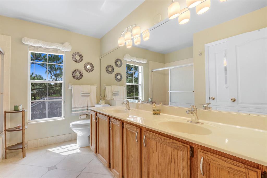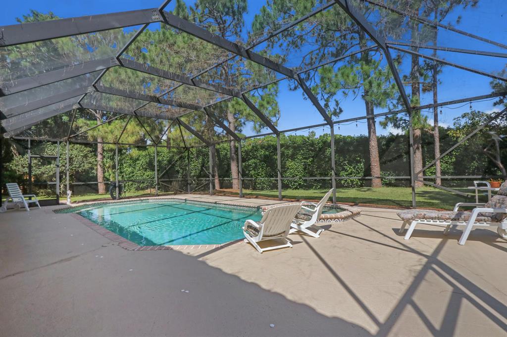 Fabulous 4 bedroom, 3 full bath plus den & office Pulte built CBS pool home zoned for great public schools! Updates include kitchen, bathrooms, flooring, pool deck, interior & exterior paint. Two complete A/C systems 2018 & 2015, roof 2009. Huge 45x10 roofed screened porch with 8' pocketing glass sliders add to the enjoyment of the screened pool area! Energy efficient solar tinted windows and complete accordion shutters for speedy storm prep! Regain your serenity listening to the breeze blow through the 14 long leaf pine trees, oaks & palms on your 1/3+ acre lot! Enjoy two open patios and fenced yard for dogs or kids! Two attic spaces plus 15x7 storage room provide extra space! Any and all furniture negotiable! Low HOA fee! Easy, quick I-95 or turnpike access! Floor plan in Documents.