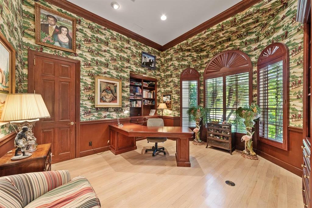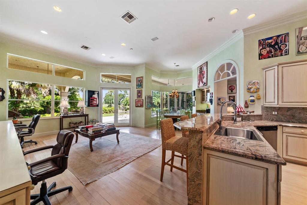LOCATION, LOCATION, LOCATION! This stately custom Breakers West beauty has all the flair of classic Palm Beach Island Mediterranean style architecture. 4 bedrooms plus office/library 3.5 baths. Ideal circular drive with a 2.5 car garage. Gourmet Chef kitchen with center island cook top with additional full size wine refrigerator. Enjoy a lush tropical garden with expansive views of the Breakers Rees Jones Golf Course from all public rooms.Entertainment sized screened loggia suitable for indoor/outdoor living with covered summer kitchen. Breakers West is a 5 star community offering ocean, golf, tennis and social NON MANDATORY memberships available at either Breakers West Country Club or Mayacoo Lakes Club.