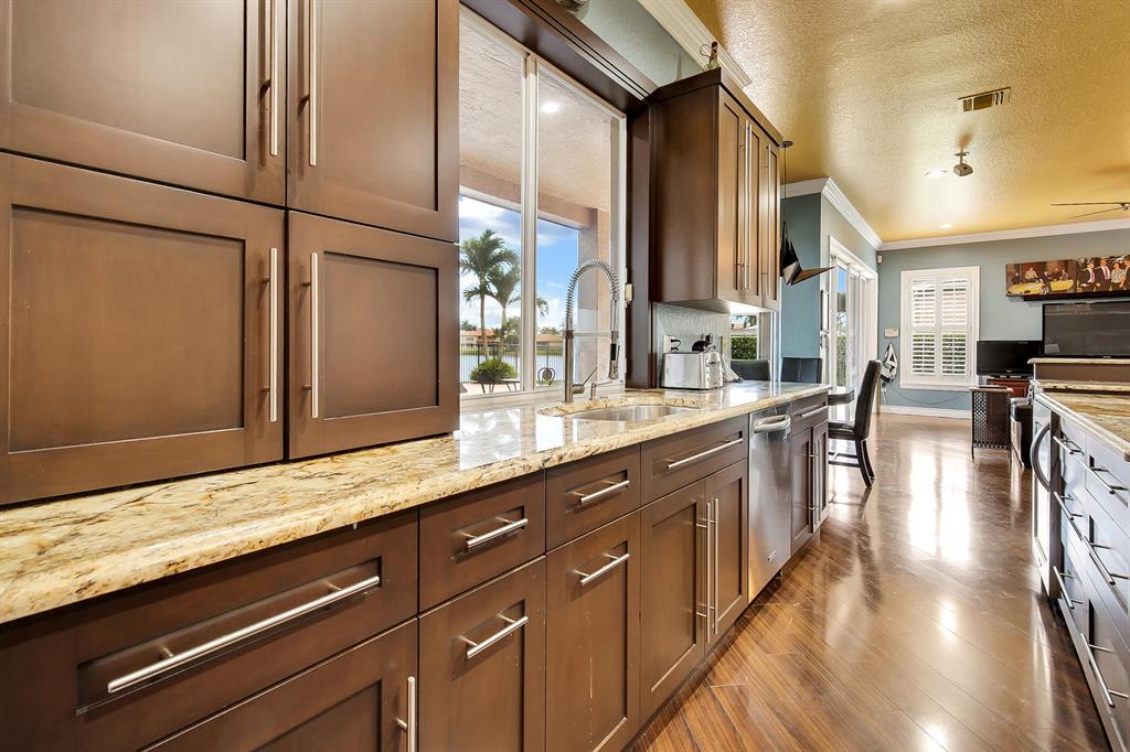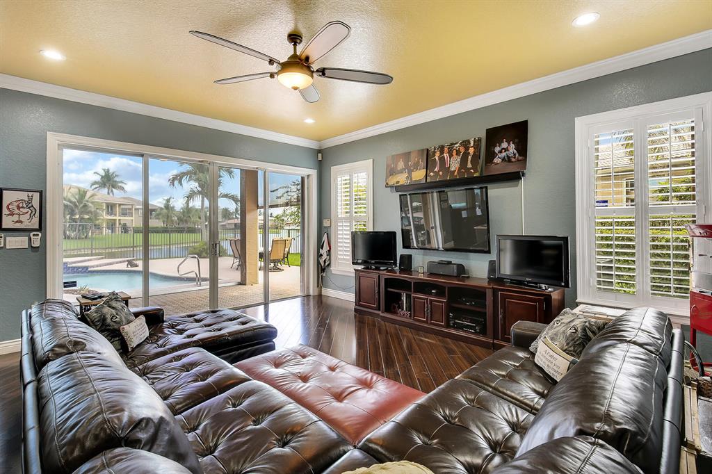 WOW, this home is a must see and shows like a designer model, on one of the largest waterfront lots in Saturnia! This magnificent home boasts 5 bedrooms, 4 baths, with incredible indoor and outdoor living spaces. Owner has put in over $100,000 in custom upgrades recently. The master suite if absolutely stunning with sitting area, palatial master bathroom with his/her amenities. Outdoor living overlooking pool and lake on each floor complete with custom electric sun screens. Gourmet kitchen with Kitchenaid appliances will satisfy most gourmet chefs. Generator with in ground propane tank will keep things running if power is lost. Gas fireplace in living room. Relax after a long day or entertain along side your gorgeous pool and spa overlooking long lake views from your premium lot.