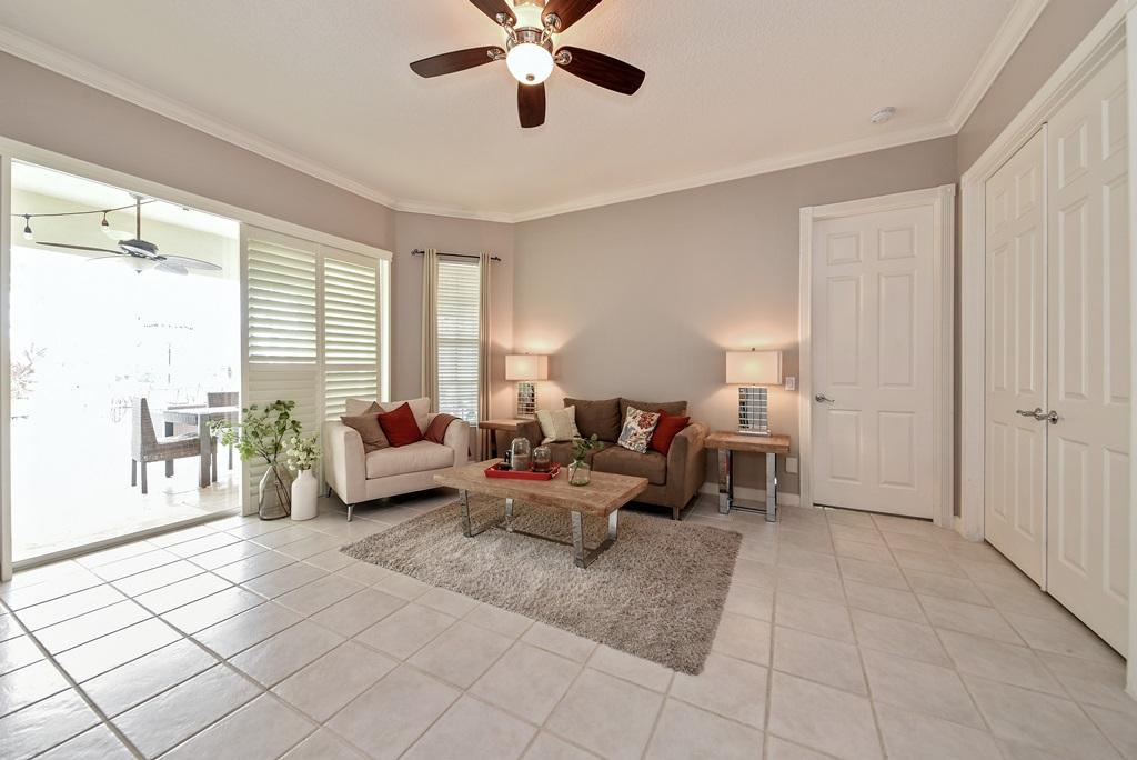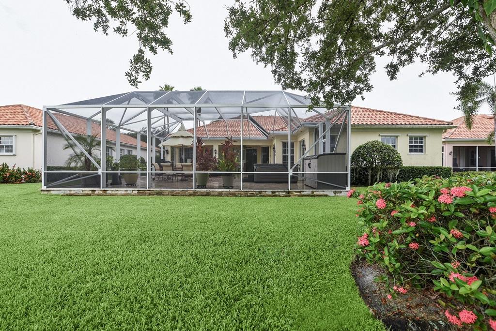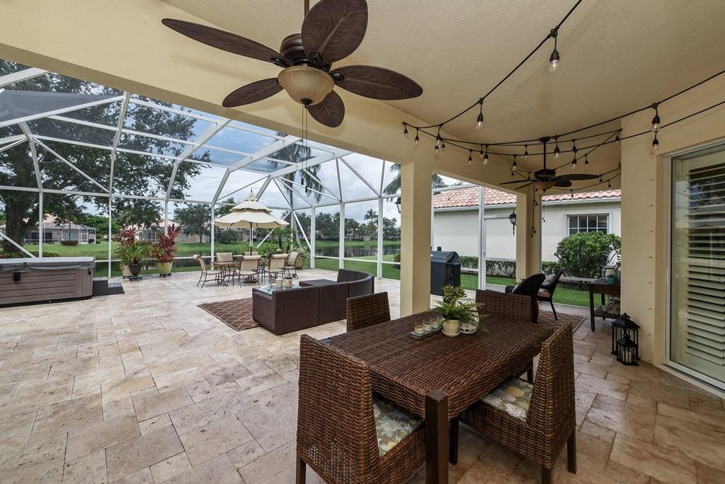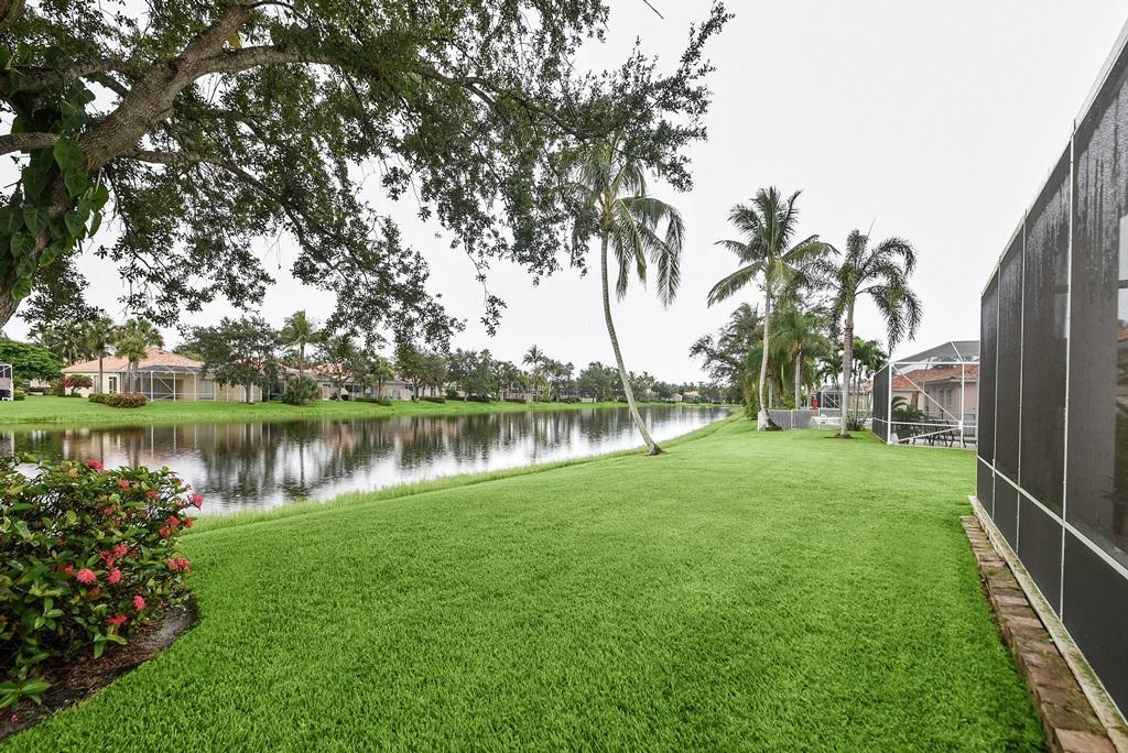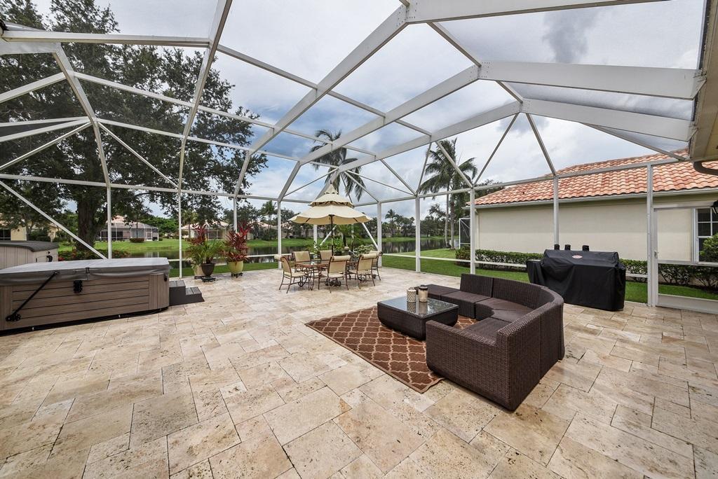 This Windsor Model has 4 Bedrooms, 3 Bath & is Sited On A Stunning .25 Acre Lush Parcel On a Charming Cul De Sac at the Front of the Complex of RiverWalk, A 24 Hour Manned Gated Community! There's a Covered Entry that Opens to the Foyer with a Ceramic Tile Floor that continues throughout the Main Rooms of the Home as does the Crown Moldings & Leads to the Gracious Living Room with Sliding Glass Doors to a Spectacular Screened Lanai which is level with the Slider, that Flows through to a 40x40, Built to the Latest Miami-Dade Code, Screened Lakeside Terrace with a Fantastic Custom Hot Tub! Plus Both of these Spaces Have Stunning Designer Travertine Tile & are Truly One of a Kind! The Possibilities are Unlimited! The Tile Library/Office with an 8' Double Door Entry & The Formal Dining Room!