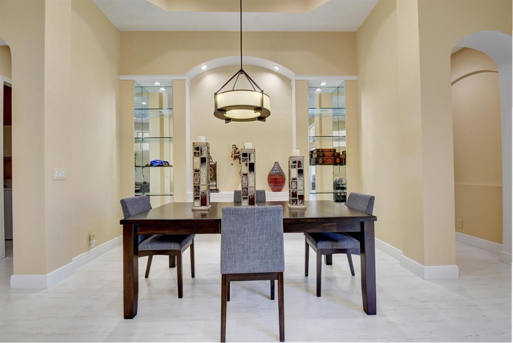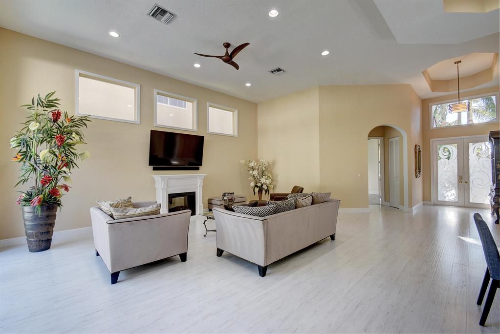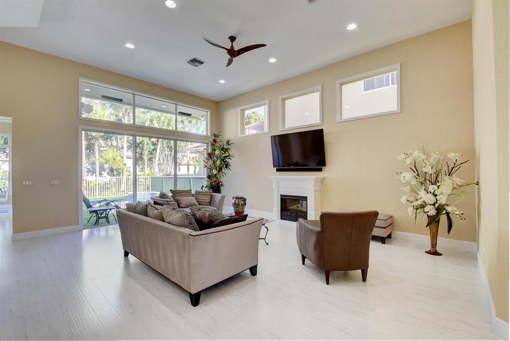 This very sunny, one story, 3 bedroom, 3 bathroom home is ready for move in. The open floor plan and high ceiling gives this home a contemporary feel. New bathrooms, flooring, light fixtures, window treatments, washer & dryer, electric fireplace, gutters, built out closet systems and 3 year old AC are just some of the recent upgrades. The large white kitchen with stunning counter tops, features a breakfast nook, that overlooks the pool and private greenbelt. The salt water pool has been refinished with new pool tiles, new resurfacing and a new pool pump. One time capital contribution to Hamilton Place is $1,995 at closing.