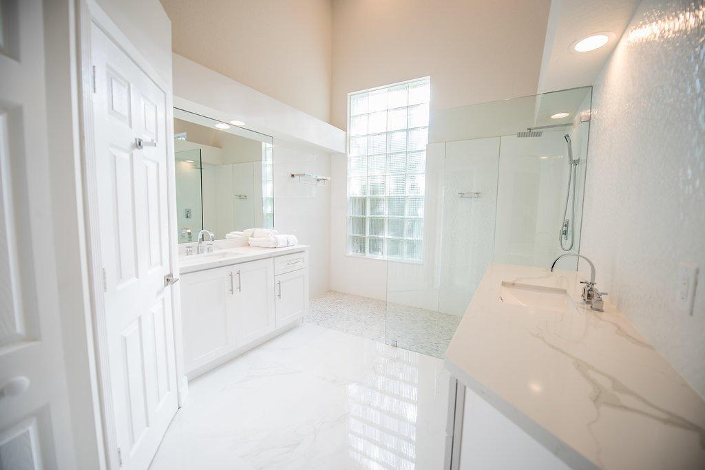 Welcome home Boca Raton's finest community, Woodfield Country Club. An all age, premier, gated and secured country club located in central Boca Raton's ''A'' rated school zone. This spacious two story single family home features 3 bedrooms, 2.5 bathrooms + loft, a 2 car attached garage and pool! Fully remodeled in 2018 including authentic 7.5'' Du Chateau Touraine style wood floors throughout, premium real wood white shaker kitchen cabinets, mitered edge quartz countertops, top of the line stainless steel appliances, new bathrooms including vanities, showers, flooring and a master bathroom reminiscent of a south beach luxury hotel spa. The modern yet tranquil color scheme of grey and white will embrace you as you enter the open kitchen with pool and fresh lush landscaping views. Home