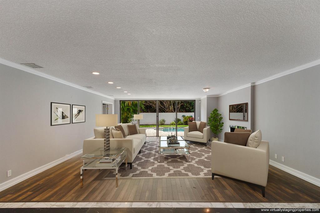Luxurious Estate Home in central Boca Raton on almost an 1/2 Acre private lot. This 2 story 5 bedroom and 5 full baths, loft, family or game room with full bar and double sided stone fireplace to the living room. A large formal dinning area and extra wide dramatic curved staircase that leads to the second story. Large 2nd floor master suite with sitting area and balcony. Expansive eat in kitchen with Viking appliances, warming drawer, wine cooler, pantry wall, granite counters. A large interior laundry room with a full bath. Circular and side pavered driveways with a 3 car garage. Roof was replaced in 2012. This home is priced to sell.