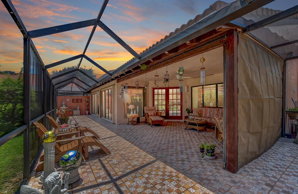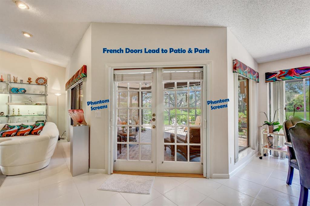 Wow!! Open & bright Mediterranean designed single-family home located in Marbella Lakes featuring 3 Bedrooms, 2.5 Baths, 2 car garage Plus a huge screened in patio & backs up to a private & beautiful park. Covered entry, big fabulous foyer with sky light, vaulted ceilings & tons of recessed lighting throughout is just the beginning in this meticulous and well thought out home. The upgraded spacious kitchen has granite countertops with tile backsplash, stainless appliances, pull out drawers in cabinets, Instant hot & cold-water dispenser, & a pantry closet. The large living areas all feature tile flooring & both the huge living room & the formal dining room have sliders plus French doors in between that all lead to the screened in patio & feature mesmerizing amazing views of the park with
