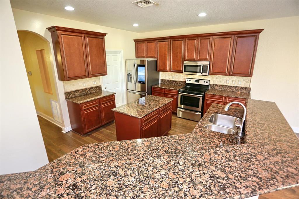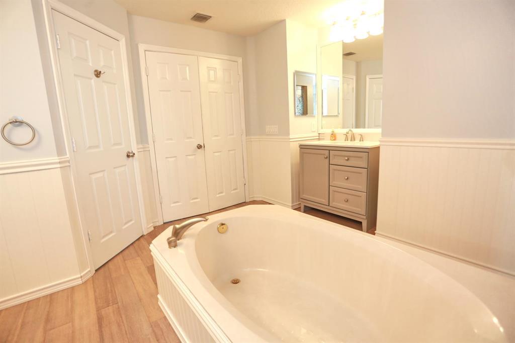Enormous 3440 sqft updated 5 bedroom, 4 bathroom, 3 car garage home with hot tub in the Tides at Briar Bay. Freshly painted inside and out, along with epoxy paint in the garage! Brand new wood floors throughout with carpet in the bedrooms. Stainless steel appliances with Smart Fridge! New solid wood cabinets with granite counter tops and wet bar off from the kitchen! New solid oak wood stairs. Video doorbell, security system, updated bathrooms with new vanities and waterproof wood floors. Massive master bedroom and walkin closets. Guest bedroom with onsuite bathroom upstairs and additional room on main with adjacent bathroom. Enjoy the covered patio with serene lake views and grassy area with tropical fruit trees! Landscaping included in the maintenance fees along with all the amenities