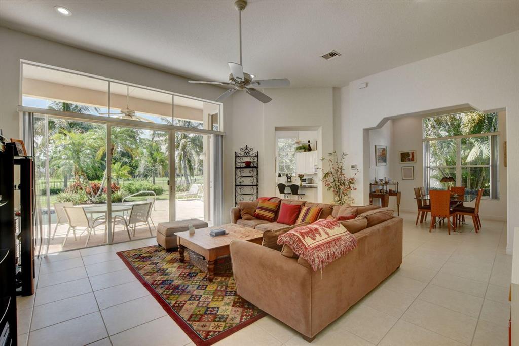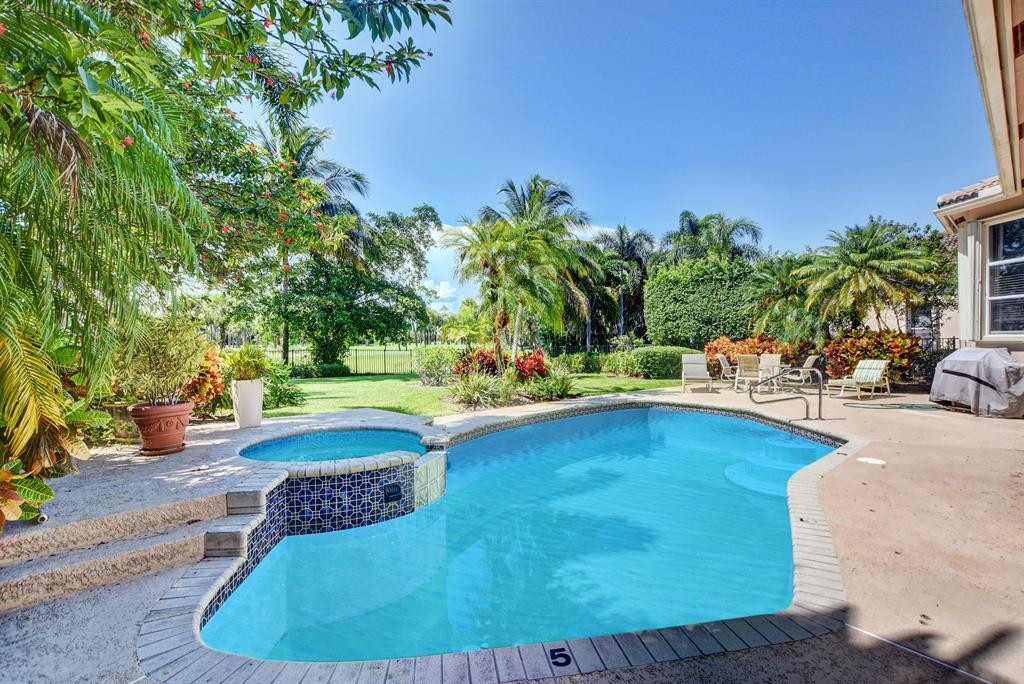 Beautiful, lushly landscaped property with large fenced in yard, pool and spa on the 10th hole of The Preserve at Ironhorse. 3 bedrooms, 2 and 1/2 baths, den/office, large great room, sunlit eat in kitchen and two car garage with golf cart parking. This home has a split floor plan with two bedrooms, with a Jack & Jill bath on one side of the home and a private master suite on the opposite. Two large walk- in closets, dual bathroom vanities and separate tub and shower make this bedroom your own private oasis. Neutral color palate throughout, this home is move-in ready. Ironhorse is a NON-MANDATORY membership community and is conveniently located near interstates, the best shopping, restaurants and airport. On the Loxahatchee Nature Preserve, enjoy the beauty of nature all year long!