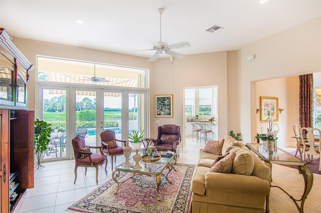 You don't want to miss the breathtaking sunsets from the patio of this pristine home in the beautiful, gated golf community of Ironhorse. With golf and tranquil lake in your back yard, this home is an entertainer's delight. Meticulously maintained by the owners, this home is truly move-in ready. Tasteful upgrades and a neutral palate, as well as a great floor plan, make this home the perfect place to enjoy Florida living. 3 bedrooms, 2 1/2 baths, den, gourmet eat-in kitchen with stainless steel appliances, granite counters and loads of windows, spacious great room and formal dining room, remodeled laundry room with loads of storage, laundry sink, new counter and front load GE washer and dryer,plus two car garage with golf cart parking!
