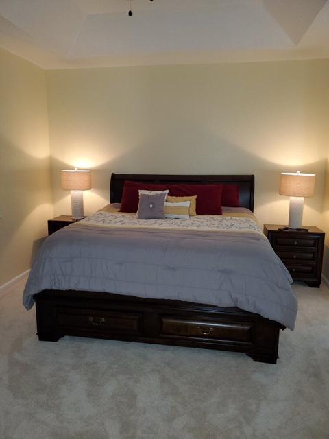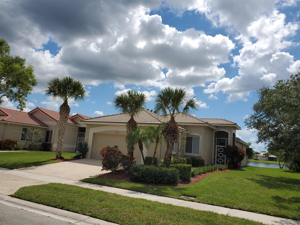 Mr. clean lives here in this light and bright fully furnished open floor plan home boasting high ceilings, tile throughout, gorgeous sweeping lake views from the master and living room. New lush carpet in bedrooms, tray ceiling in the master, walk in closets, New A/C Beautiful screened in patio overlooking the lake, Guard gated community HOA includes lawn maintenance, basic cable, alarm. Beautiful clubhouse 2 pools 6 tennis courts, a resistance pool, spa, sauna, card room, billiards and fitness center.