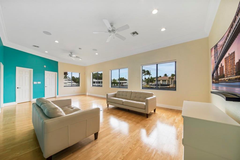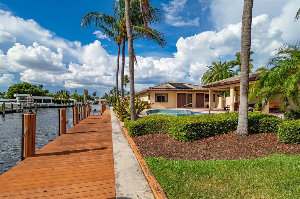 This boater's paradise on a .44 acre double lot offers 274 feet of water frontage on a wide canal with a boat lift and an extra-long dock. Just minutes to the ocean with no fixed bridges! Pass through the electric gate and up the extended driveway to discover a 3,500 SqFt home with 4 bedrooms, 3.5 baths and a 3 car garage. Light and airy with high vaulted ceilings. Enjoy peace of mind with a fully fenced yard, alarm system, security cameras and hurricane proof windows & doors. Spacious family room can easily be converted into a main suite, creating a split floorplan. Phenomenal outdoor living with an extra deep pool, landscape lighting and a built-in grill on an oversized covered patio with breathtaking views of the intercoastal. Close to popular restaurants and the mall.
