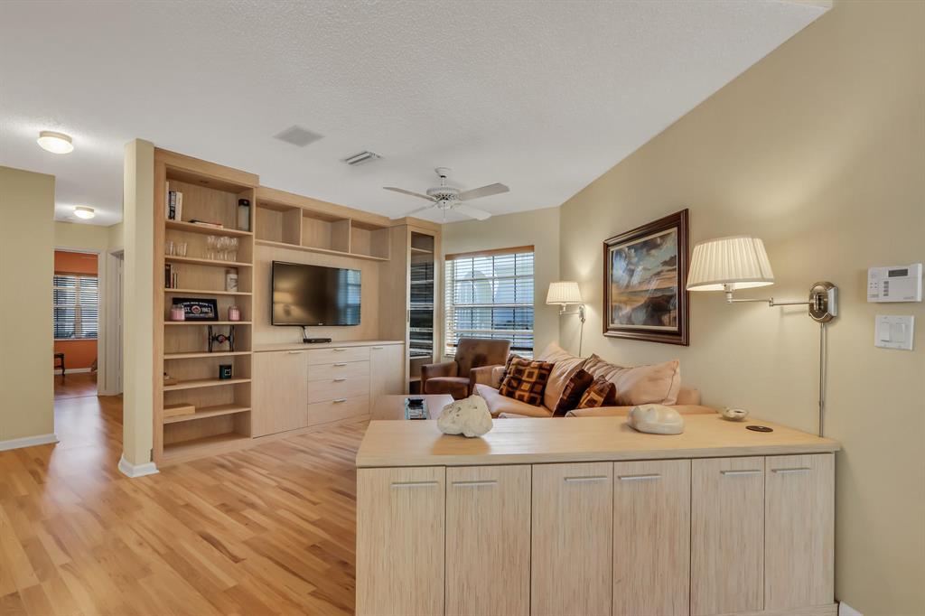Spacious 2 bedroom 2.5 bathroom home located In prestigious Breakers West. Wood ceilings and new wood engineered floors throughout. Open den and plenty of closets with custom built-ins.Located on a beautiful lake with a screened in lanai. Membership is not mandatory. A must see!