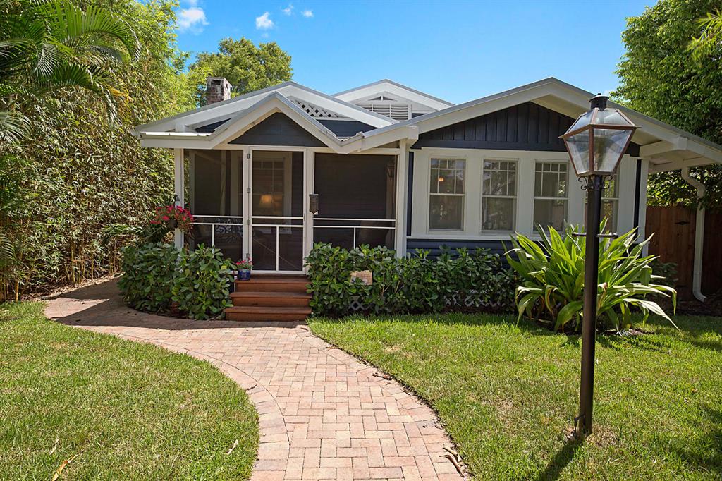 This charming 2Bed/1Bath Craftsman home has a separate 1 Bed/1Bath guest cottage. Several recent improvements include a brand new metal roof, refreshed interior and exterior paint, and updated lighting fixtures. Enjoy original Craftsman details, hardwood floors, a built-in China cabinet, a wood-burning fireplace, and a spacious screened-in front porch. The home is ideally located in Mango Promenade, by far one of most charming historic neighborhoods in West Palm Beach. Comprised of a handful of homes, The Promenade, located east of Dixie, just two streets south of the Norton Museum, and is the only location in West Palm Beach in which the homes face a tree lined walkway with no drive thru traffic. Its tranquility feels like Key West, yet is a stone's throw from downtown West Palm Beach.