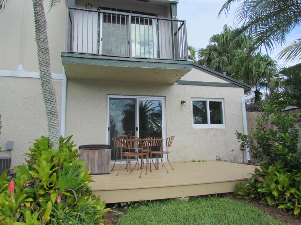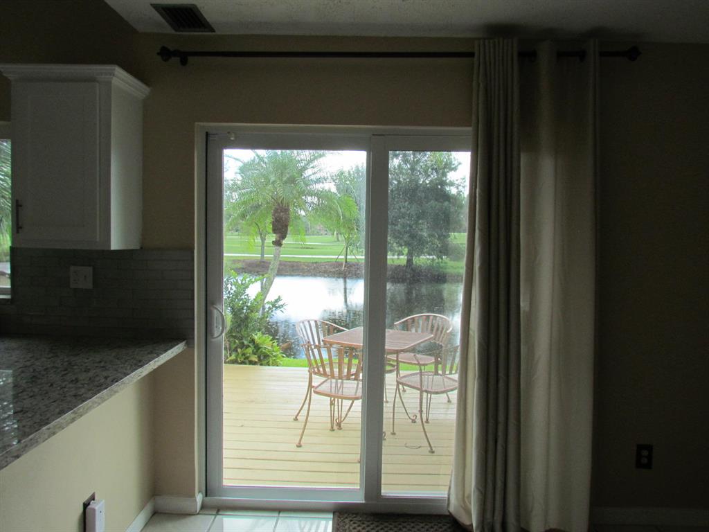 Come see this beautiful townhouse. Located in the community of Lago West with water and spectacular golf course views. BRAND NEW Hurricane impact windows (along with shutters/panels), brand new gutters and fencing, updated kitchen with new granite countertops, new closets and closet doors, hardwood and tile floors, new paved front patio and wood deck in the rear. Home has one full bathroom downstairs with laundry room. Two bedrooms and one full bathroom upstairs. The HOA will be painting the exterior of the homes within the very near future. The monthly HOA fee also includes Homeowner's Insurance, roof, lawn service and maintenance on amenities. This home is move in ready and won't last long!!