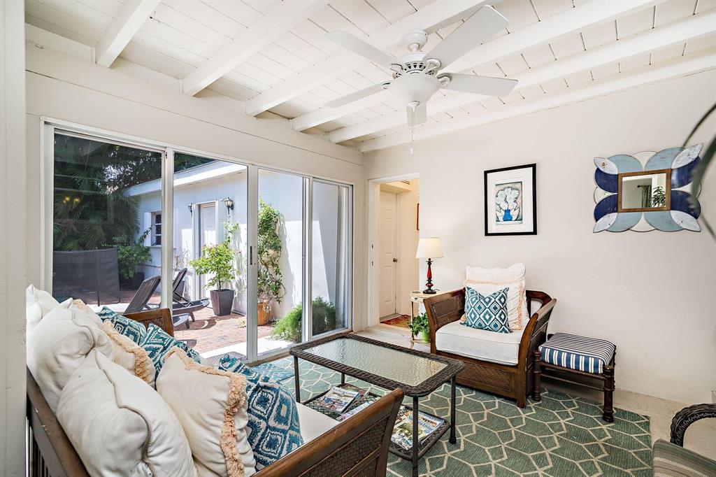 Delightful 1940s cottage in the Historic Prospect Park neighborhood. Boasting original hardwood floors, this 3 bedroom / 3 bathroom home features an expansive living room with a dramatic vaulted and beamed ceiling. The sunroom offers a perfect secondary room for entertaining. Adorned by lush, tropical landscape and a resort style pool, this home offers a private brick patio and loggia. Situated one house from the Intracoastal waterway, this home enjoys ocean breezes and beautiful sunrises. Close to Downtown West Palm Beach, Palm Beach Island and Palm Beach International Airport.