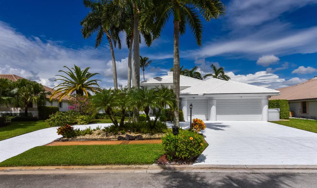 Come see this one story split floor plan contemporary home with expansive water & golf course views. Kitchen has granite counters, family room with built-ins, sunken living room with fireplace, volume ceilings throughout. Home has 3 car garage on .32 acre lot. Membership to St Andrews CC is required.