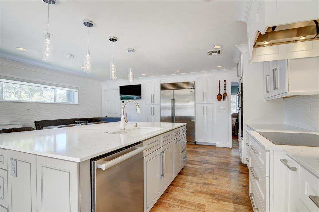 Welcome Home! 5/3 exquisitely remodeled w/designer enhanced touches throughout. Beautiful, vaulted wood ceilings greet you as you walk through impact double doors. 3 sets of impact sliders allow fantastic views to new 15x30 salt water pool w/waterfall and travertine patio , New Hot Tub. Covered Patio is practically entire length of home! Huge 19x19 Kitchen is a Cook's dream! Grand quartz island, Subzero fridge, Jenn-Aire oven/microwave and induction stove. Also a pot filler! Cabinets, storage galore! Bathrooms equipped w/bidet TOTO toilets and stunning showers. Oversized Master ensuite w/enormous walk-in closet, sitting area w/impact slider to screened patio. New Dual A/C, Nest thermostat/camera system 1.5 miles to beach!!!