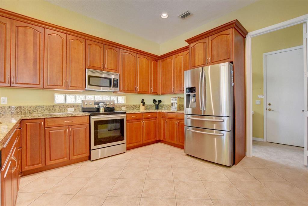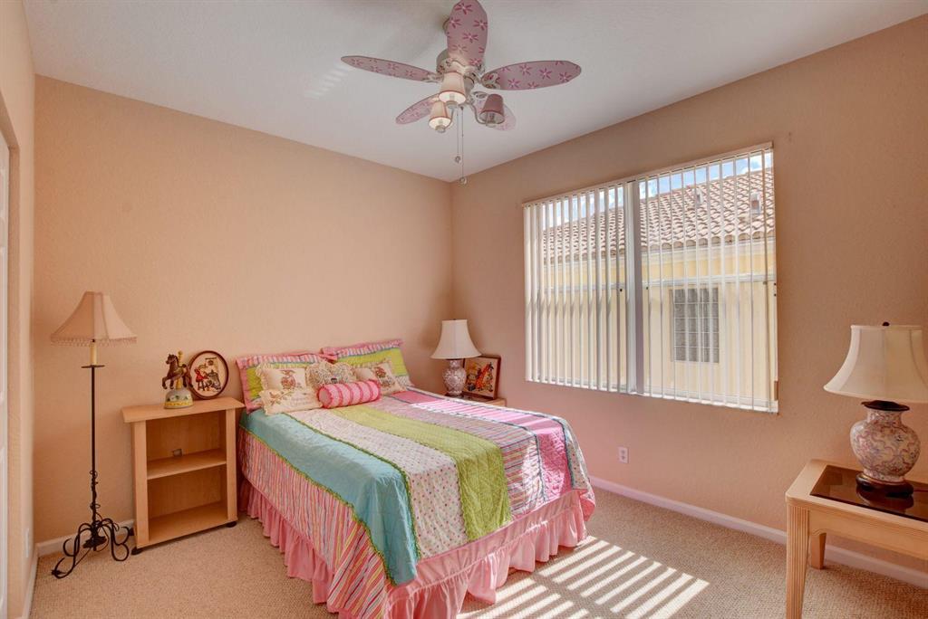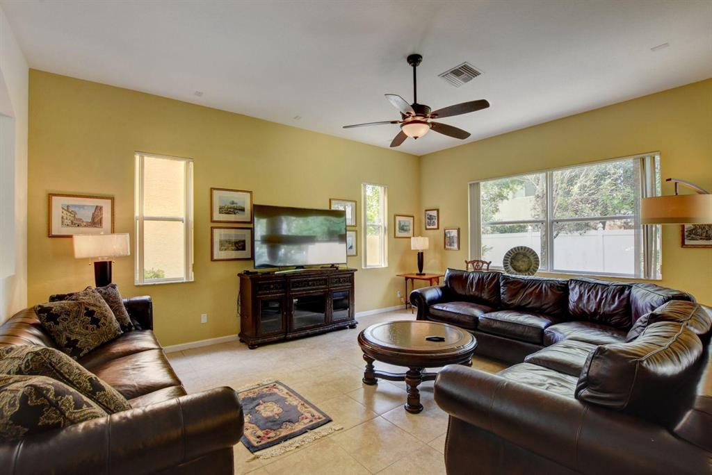 Impeccably maintained 5 bdrm home plus loft. Kitchen is loaded with granite counters, stainless steel appliances, 42'' raised panel cherry wood cabinets with moldings, pull out drawers & Lazy Susan. Tile throughout the downstairs and high quality carpet upstairs. The master suite of this model has a unique his and hers toilet, sink and vanities. All bedrooms are upstairs. Covered front and back patio. The backyard is cozy with lush palms, fruit trees and privacy fence. HOA includes FULL LAWN CARE, 24 hr manned gate, roving patrol. Amenities include well stocked GYM, resort pool with waterfall mushroom for kids, tot-lot, basketball, tennis court, covered picnic/bbq pavilion & more. Terracina is within 15 minutes to I95,Turnpike, PBI Airport, Okeeheelee Park, Wellington Green Mall etc.