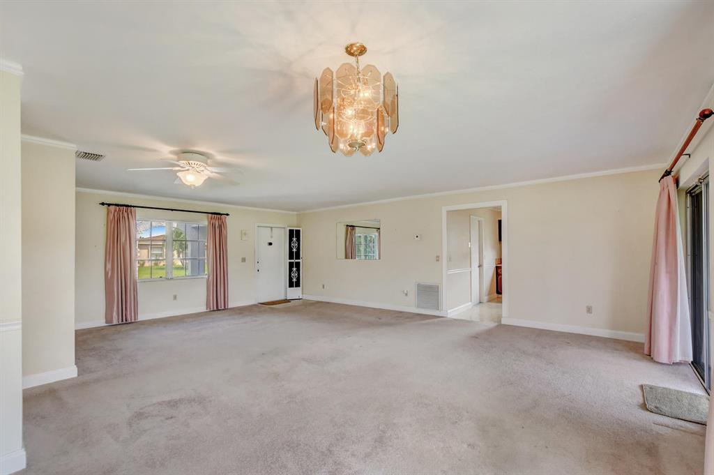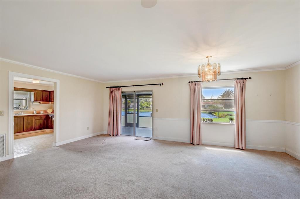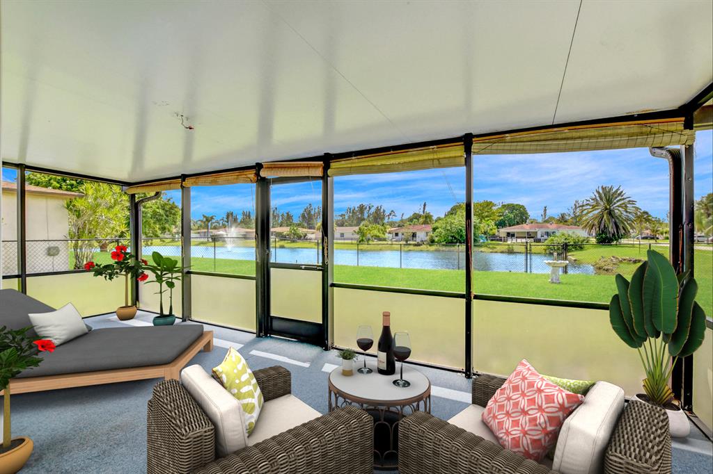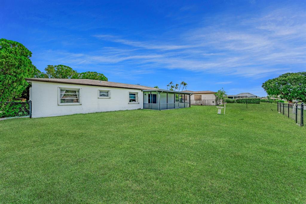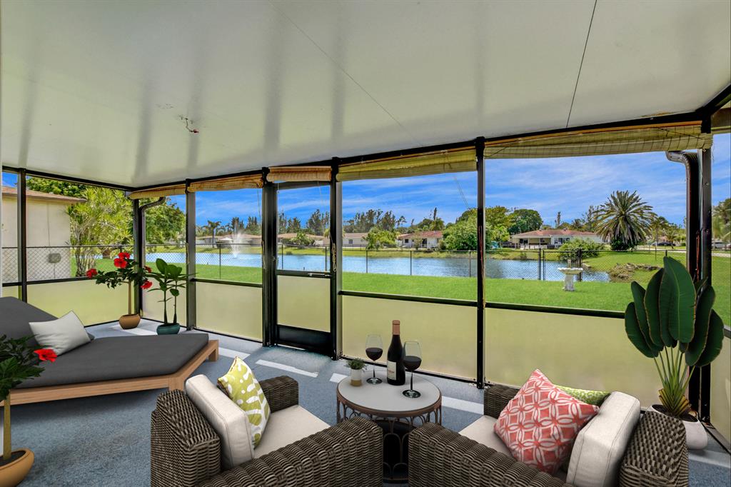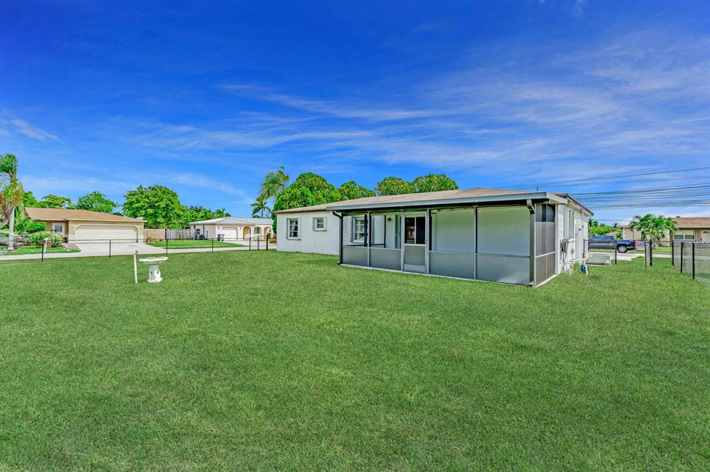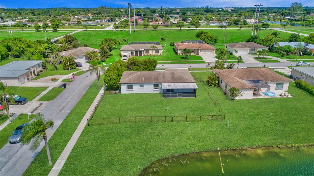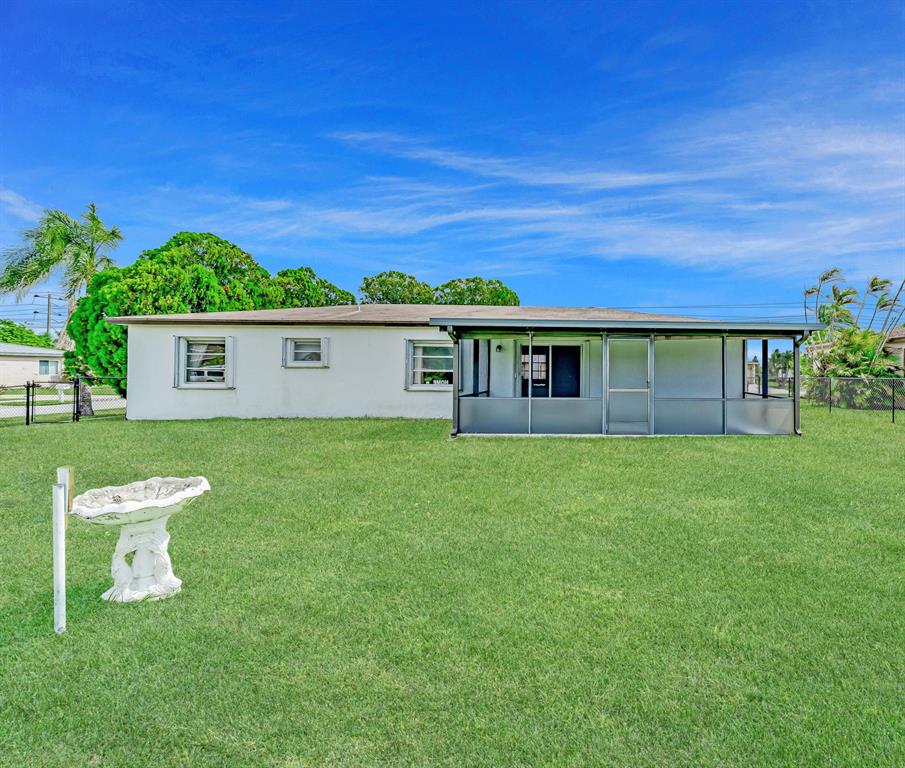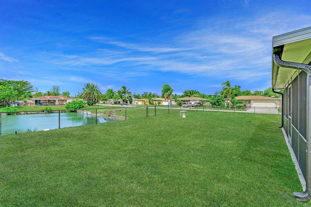 Adorable, meticulous & lovingly well maintained home by the original owner. This model is a 3 or 4 bedroom depending on if living room wall is up for the 4th bedroom or left open for a very HUGE living space. This home currently has the wall open but can easily add a 4th bedroom if you wanted to. Featuring 3 bedrooms(easily made in to a 4 bedroom with minimal cost but adding a wall), 2 bathrooms, & an oversized 1 car garage with a double wide driveway, a covered & screened in patio Plus a sparkling pond in the backyard. Home is located on a huge corner lot with 8,355 square feet and plenty of room for a pool. Large covered and screened in patio. The lawn sprinkler water comes from the canal so save on your water costs. This home is very clean and in excellent condition.