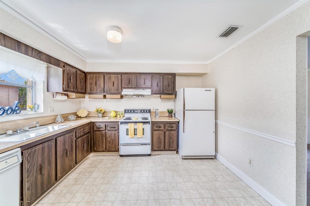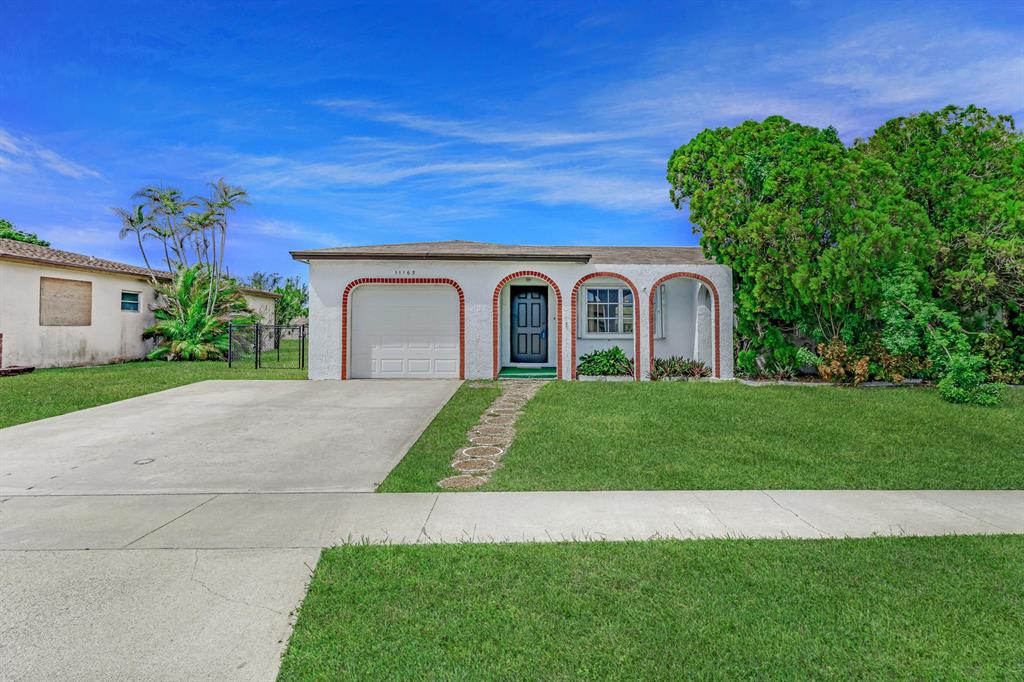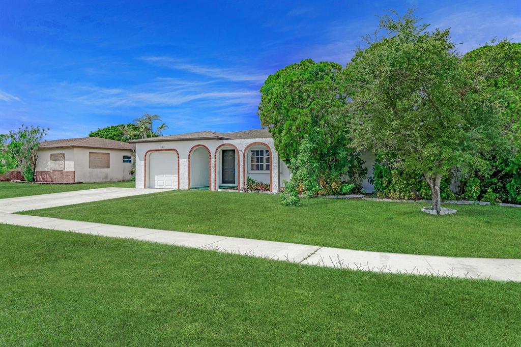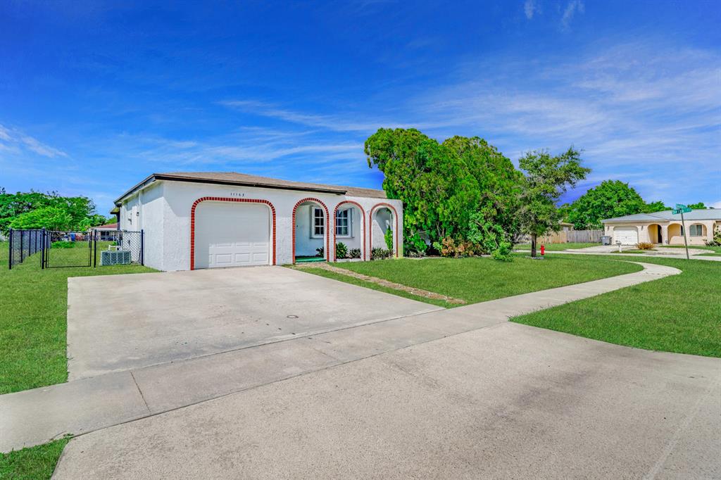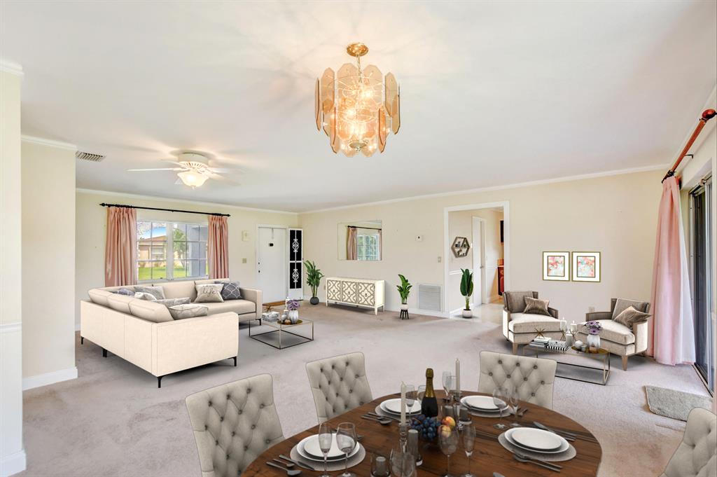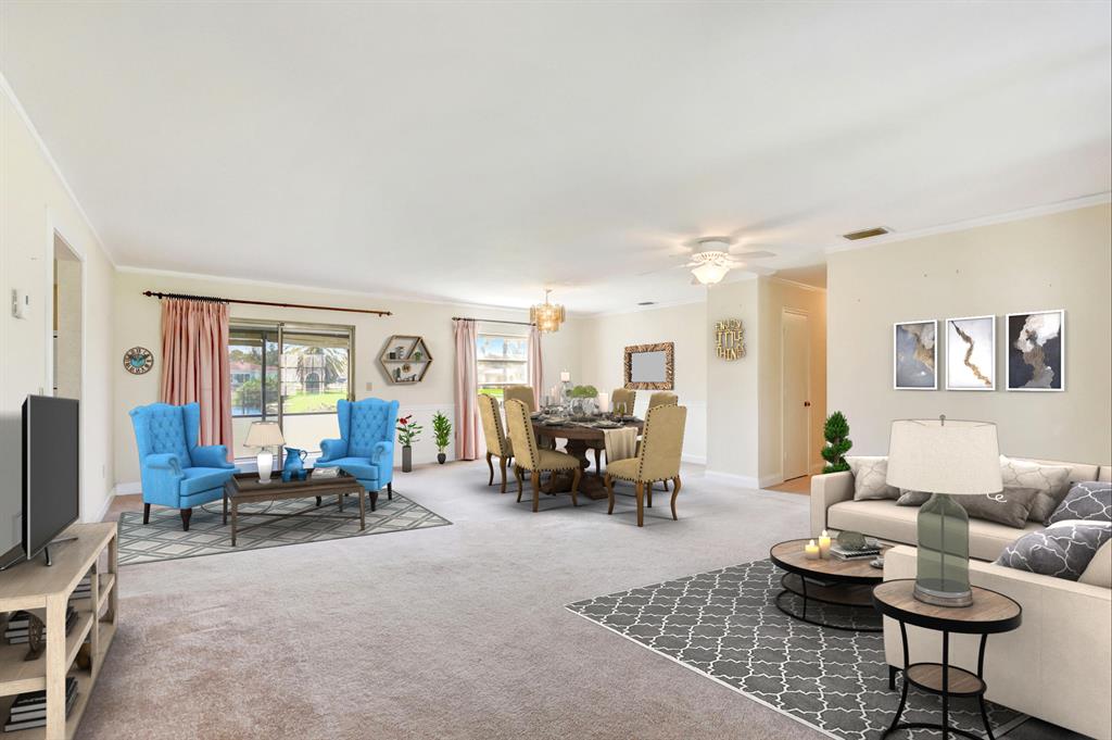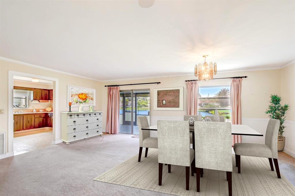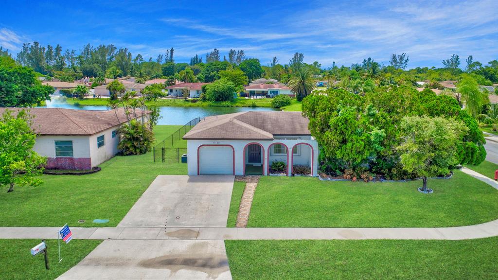 Adorable, meticulous & lovingly well maintained home by the original owner. This model is a 3 or 4 bedroom depending on if living room wall is up for the 4th bedroom or left open for a very HUGE living space. This home currently has the wall open but can easily add a 4th bedroom if you wanted to. Featuring 3 bedrooms(easily made in to a 4 bedroom with minimal cost but adding a wall), 2 bathrooms, & an oversized 1 car garage with a double wide driveway, a covered & screened in patio Plus a sparkling pond in the backyard. Home is located on a huge corner lot with 8,355 square feet and plenty of room for a pool. Large covered and screened in patio. The lawn sprinkler water comes from the canal so save on your water costs. This home is very clean and in excellent condition.