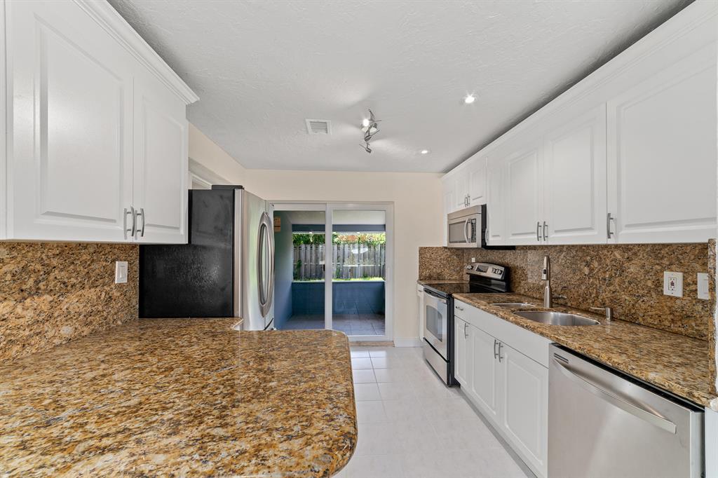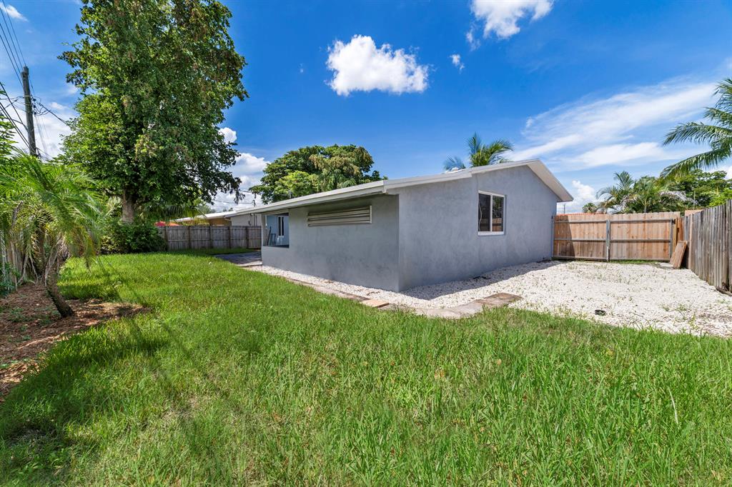Completely remodeled and freshly painted inside & out! 3br + den/office/playroom in popular east Pompano community. Upgraded kitchen with white cabinetry, granite countertops and stainless appliances. Remodeled bathroom with tub. Lots of windows make this charming home light & bright inside. Covered patio & large fenced yard with new sod perfect for playing, entertaining and pets. Hurricane Impact windows and doors throughout. No HOA means you are saving money each month. Extended paver driveway with enough room for 4 cars. A/C 2016. Nothing for you to do but move in and enjoy! Walk to Cresthaven Elementary. Super convenient location less than 5 minutes to stores & restaurants!