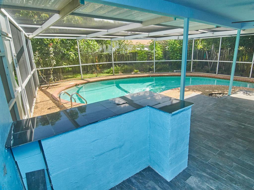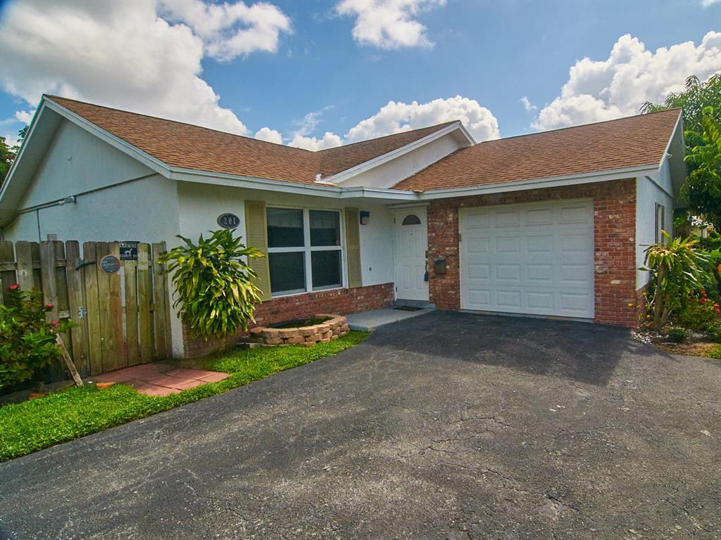 >Start the new year 2020 buying this home. Move in ready. >About 2 miles to the ocean.> No homeowners association. Corner lot, circular driveway, pool. >New Air Conditioner installed in Jan,2019. >Impact windows. Laminated and Tile flooring throughout. >3 bedrooms, 2 bathrooms. Wooden kitchen cabinets, granite countertops. Washer and Dryer. One car garage. Sprinkler system, mature fruit trees, fenced lot <