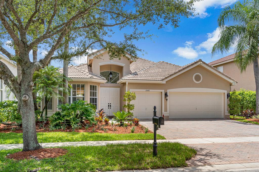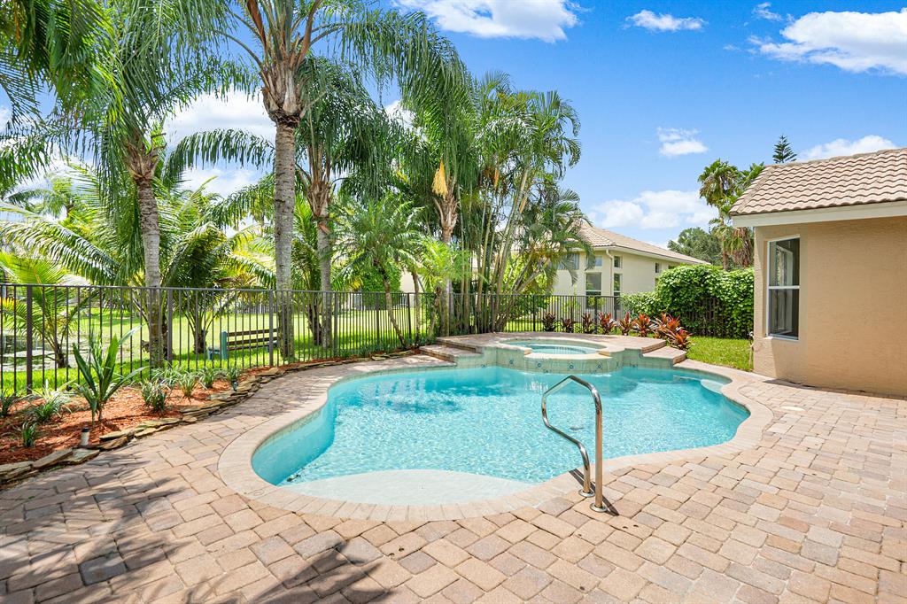 Updated one story pool home on south backing lot with lovely lake views.The home features an open floor plan with four bedrooms,three baths and a three car garage.Features include tile throughout the main living areas and wood flooring in bedrooms.The gourmet kitchen has wood cabinets,granite countertops and stainless steel appliances.The snack bar and bay windowed breakfast area are great for casual dining while the formal dining room is perfect for holiday dinners.The large family room is open to the kitchen.The master suite features two walk-in closets and luxurious bath.You'll love the ''backyard resort'' - pool and spa overlooking the beautiful lake.Newer a/c units - one replaced 2011 and one replaced 2014. Manned gated community with amenities and 'A' rated schools across the street.