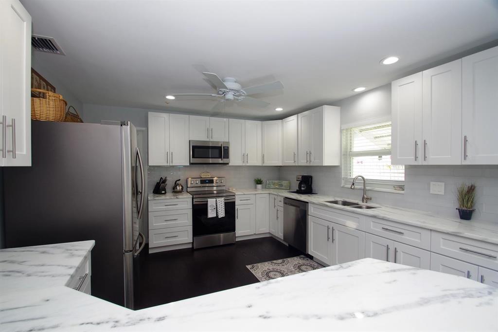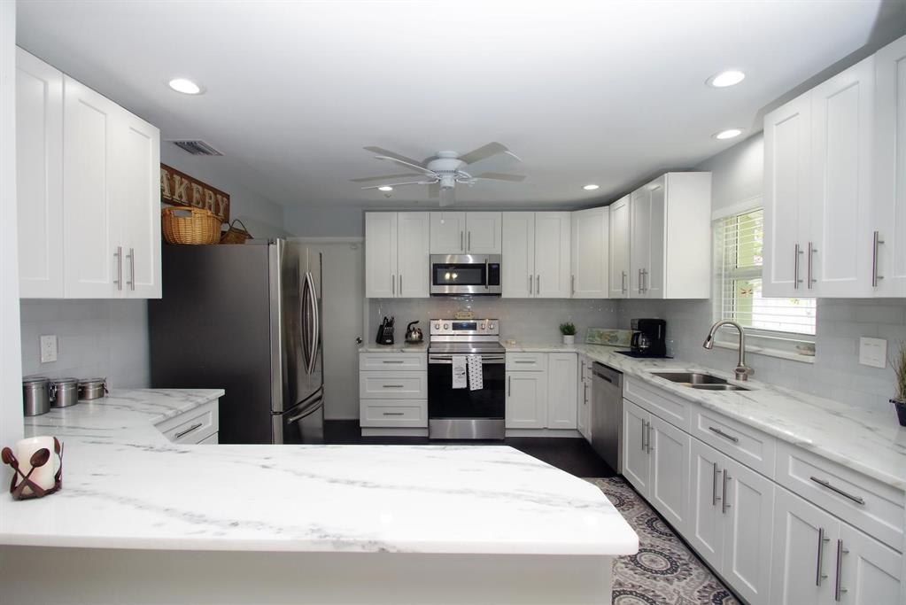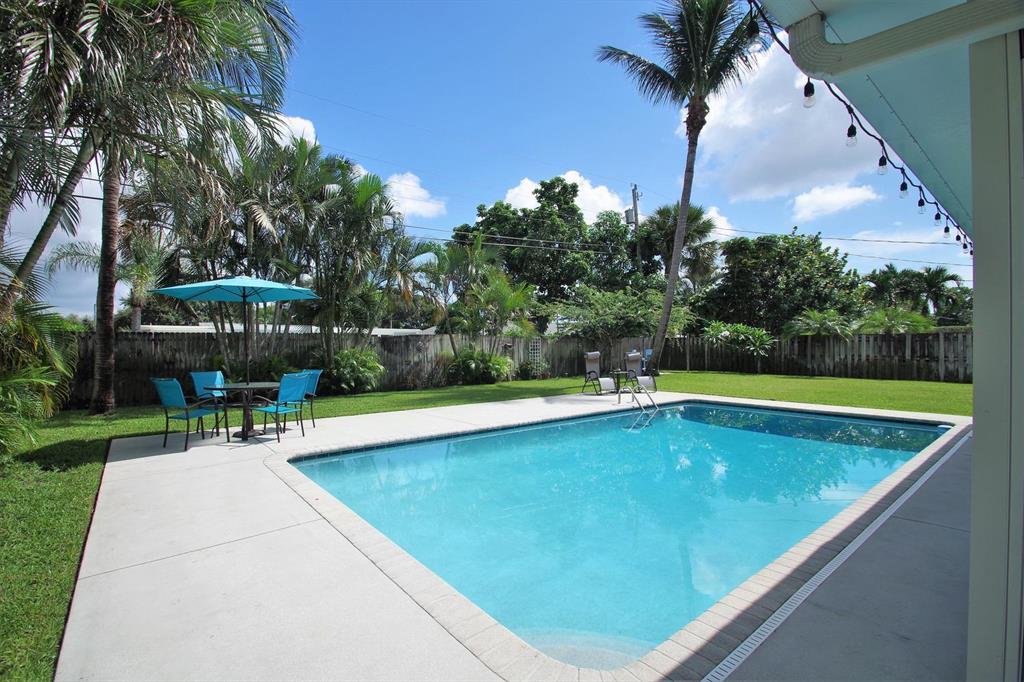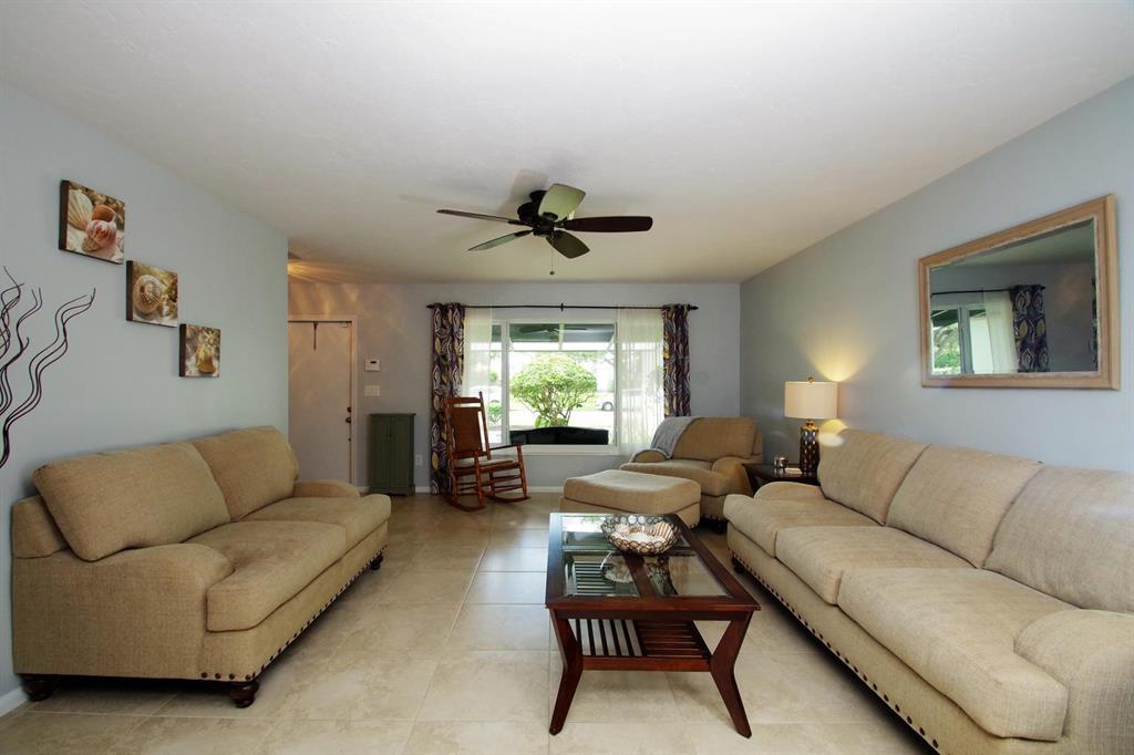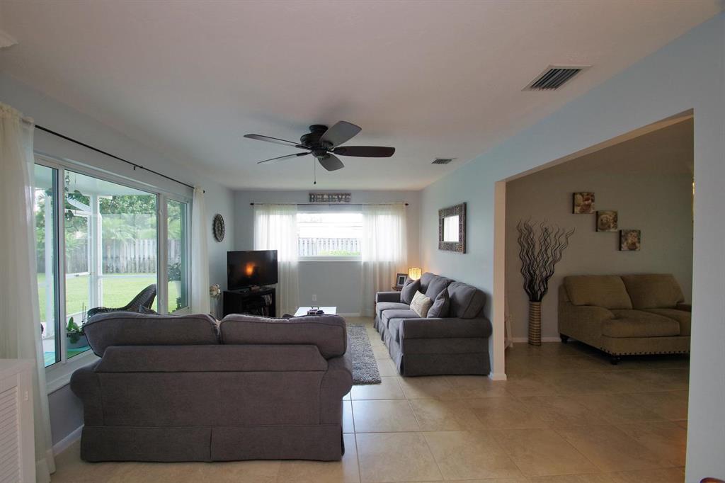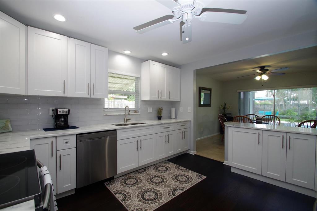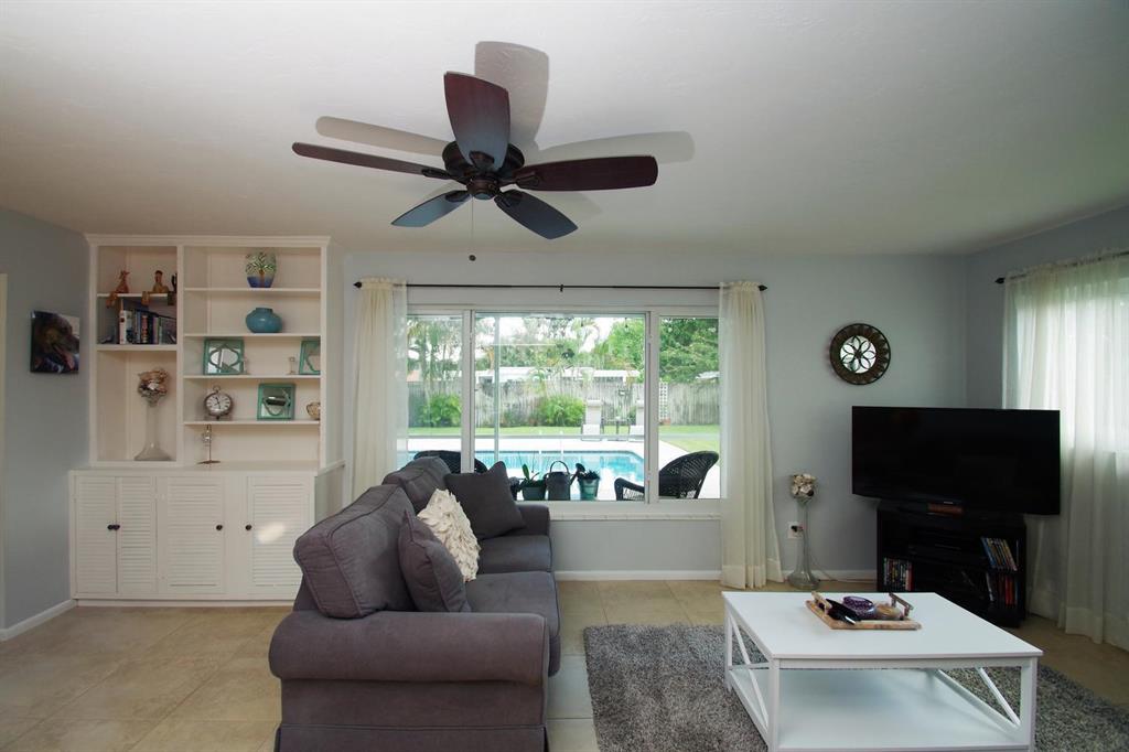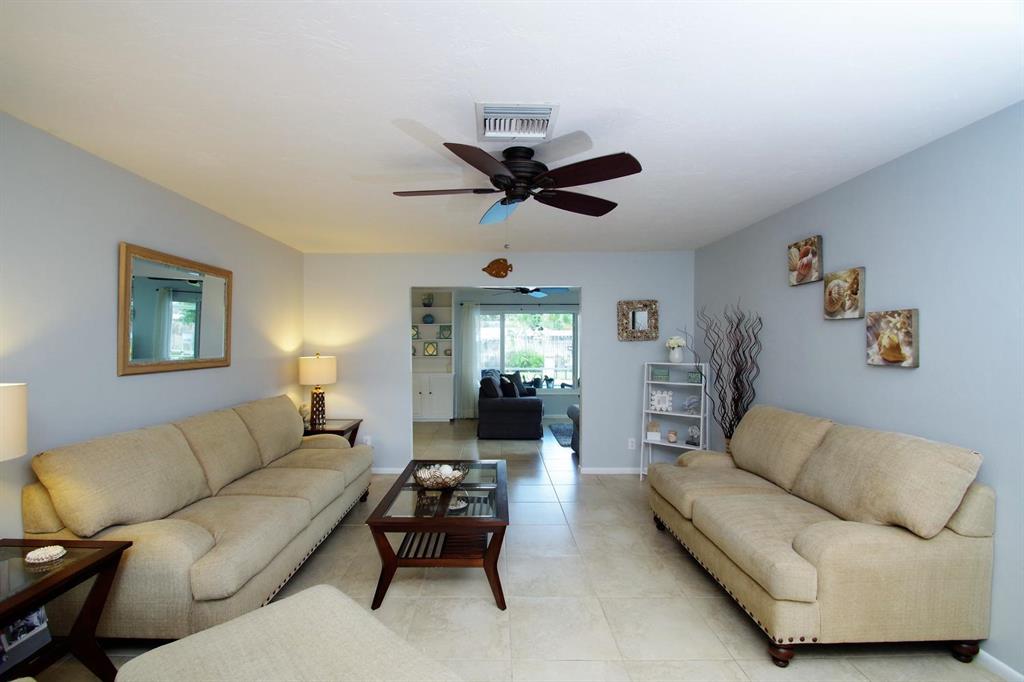 Spacious, renovated, VERY well cared for home with the family room and dining room overlooking the sparkling pool and large, privacy fenced, tropical back yard - offers 2018 kitchen (soft close) cabinets, S/S appliances, LED lighting and engineered wood floors. The rest of the floors are a pleasing, neutral 18''x18'' tile. In 2017 the guest bathroom was totally re-done, 2017 impact windows except bedrooms and sliders. Bedrooms have efficient double pane windows. Storm shutters complete. All new switches and outlets through-out, 2019 garage door and opener, 2018 W/H, 2017 washer/dryer, room for a boat on both sides of home, a canal in front of home for fishing or kayaking, plus natural gas is here!! LCS has it's own police, parks, events and boat ramp/docks. A MUST see!!