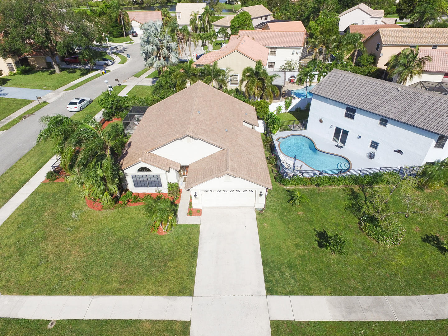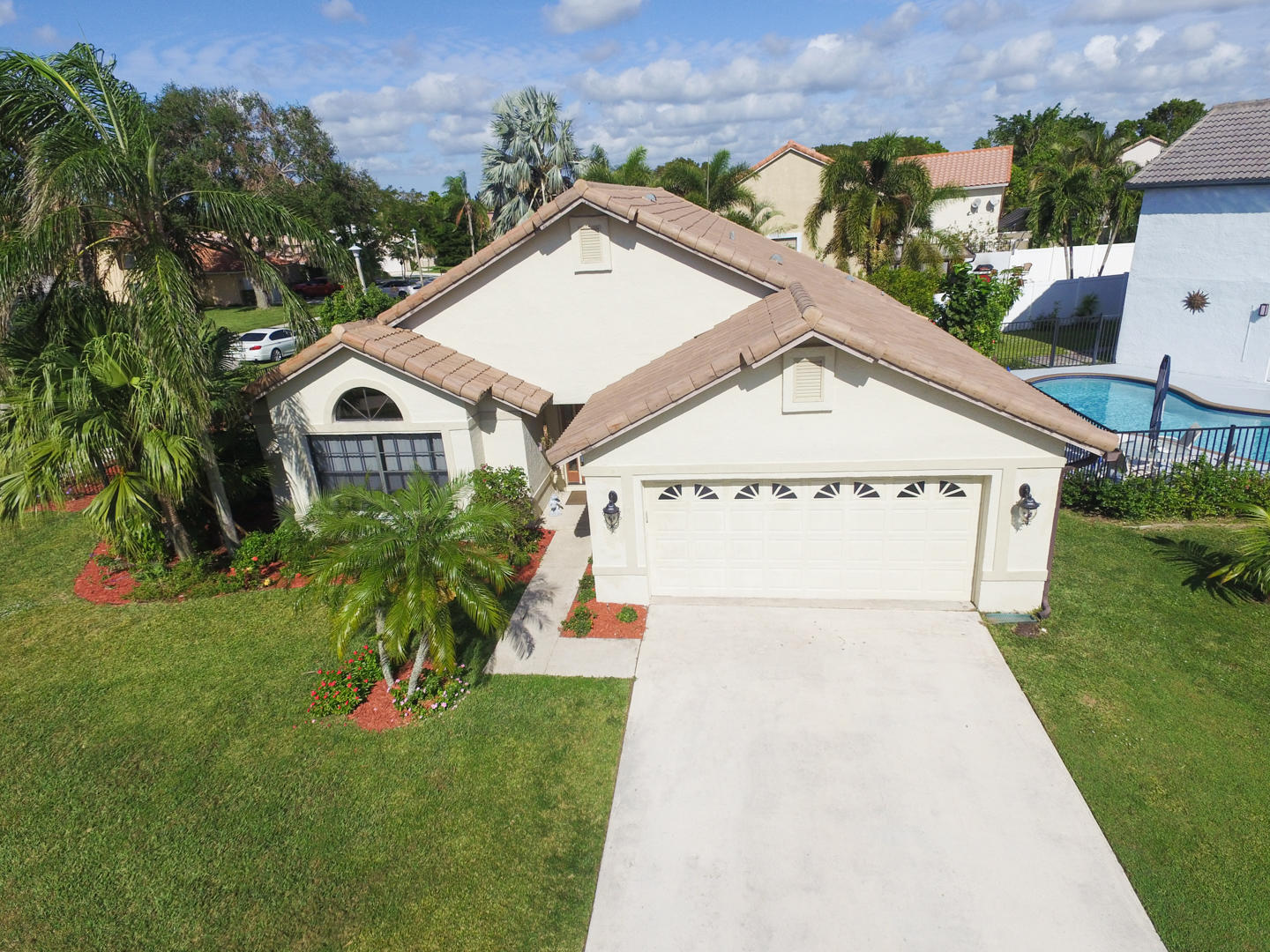 Adorable and cozy single family home. This great corner home features 3 bedrooms, 2 baths, 2 car garage. Covered patio, screened enclosure and fenced in. Beautiful neutral tile, crown molding throughout, freshly painted, the bathrooms and kitchen have been updated. The barrel roof was replaced in 2005, new air conditioner and more. This fantastic community offers, pool, tennis court, playground close proximity to shopping centers, restaurants, highways, and excellent school district. A must see!!!