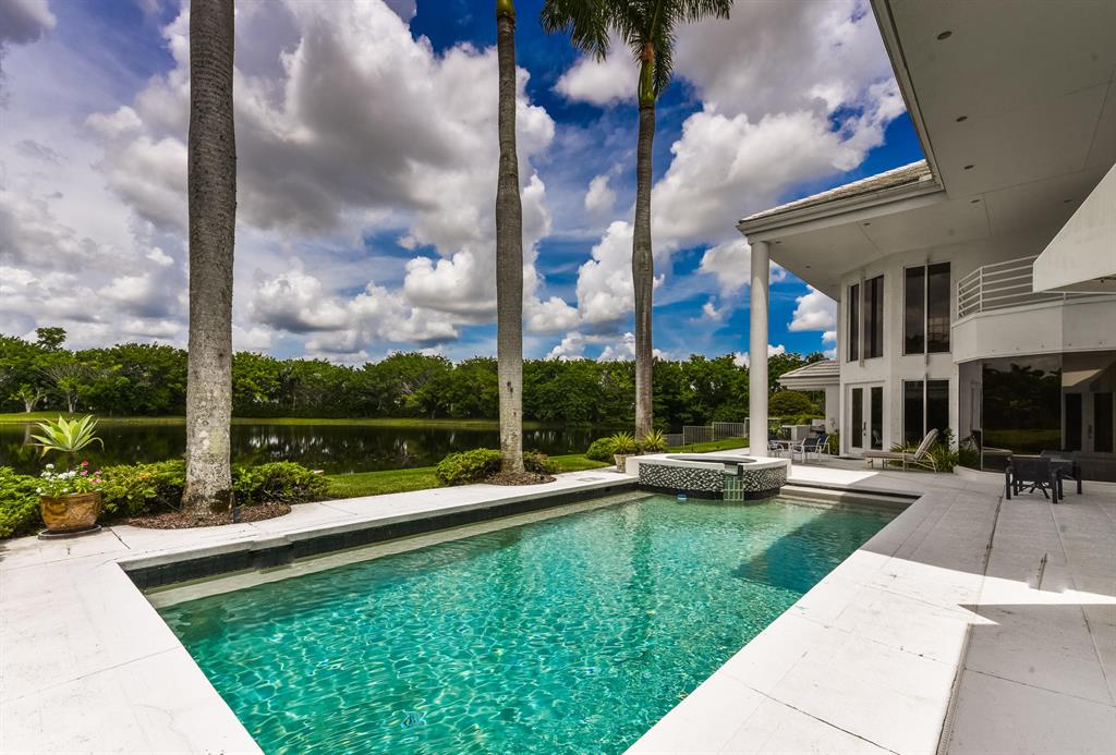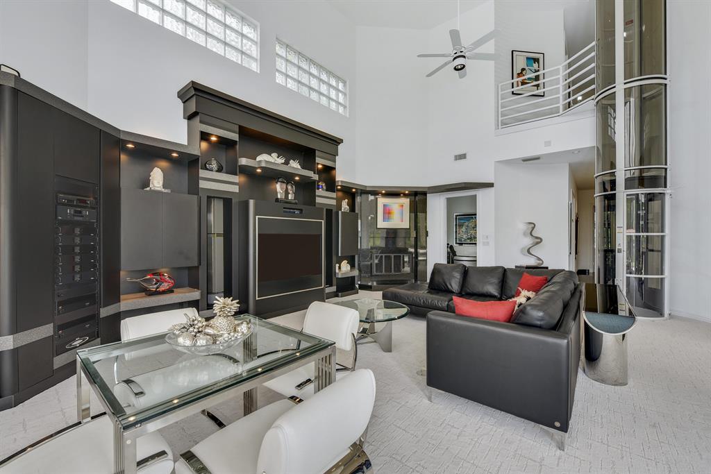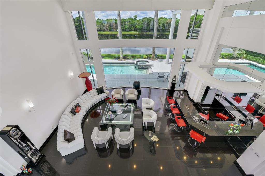 This timeless contemporary has sensational lake and sunset views. A circular driveway services a three plus car garage and main entry, while a two story entry foyer, with sweeping staircase, transcends to a granite accented great room, dining area, and entertainment bar, with direct views of the open pool, patio and lake view. An exceptionally spacious first floor master bedroom suite with dual baths and closets opens to the pool patio with lake views. An updated contemporary kitchen, breakfast area, full family/media area, elevator, office with full bath and an additional bedroom suite complete the first floor. The second floor, serviced by staircase or elevator, features a media room, billiards/game room and four additional bedroom suites and two balconies. Membership is required.