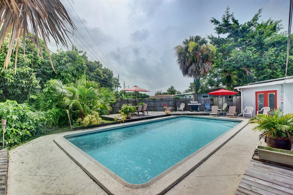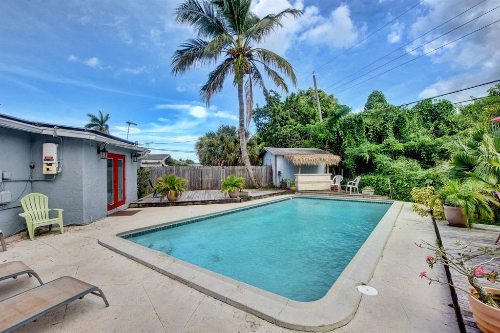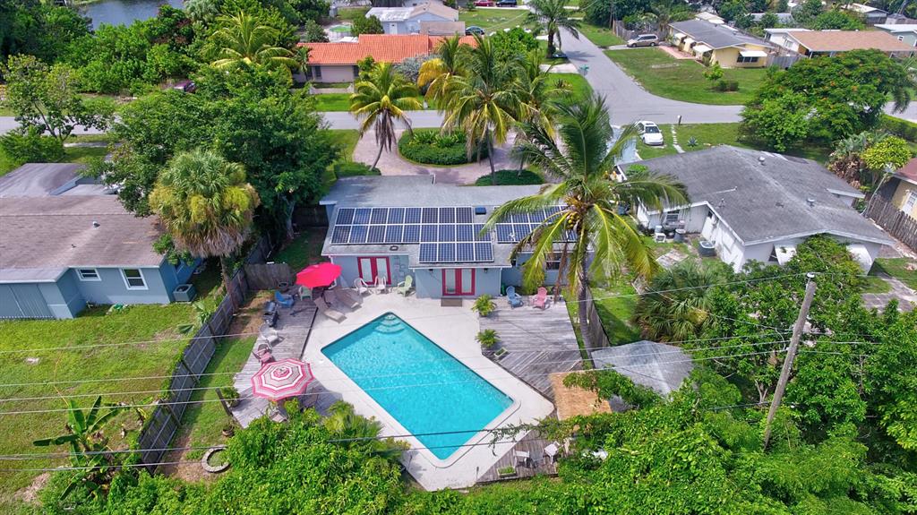 This home has all the bells and whistles!! From solar panels, to lush landscaping, and Caribbean feel backyard with 35x15 pool and tiki bar. Nice neighborhood close to PBC Airport, restaurants and shopping with No HOA. Upgrades galore, tile in living areas, laminate wood floors in bedrooms, impact windows, newer kitchen with stainless steel appliances, and updated bathrooms. 2016 A/C and water heater, upgraded pool filtration system, and solar attic fan.