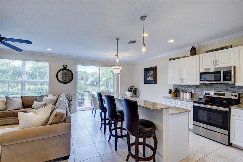 Beautiful luxury townhome with 3 bedrooms, 2.5 baths in Tara Cove. Located in a lovely gated community with only 50 homes. Featuring gourmet style kitchen with upgraded white wood cabinets, granite countertops and stainless steel appliances, impact windows, crown molding, plantation shutters, spacious master walk-in closet, one car garage and 2 parking spaces within driveway. Enjoy the beautiful garden view of the preserve area on the extended patio. Close to restaurants, shopping, entertainment, Palm Beach International Airport, Baseball stadium and beaches. You will love calling this place ''HOME!''