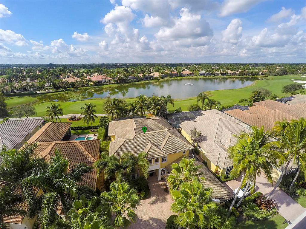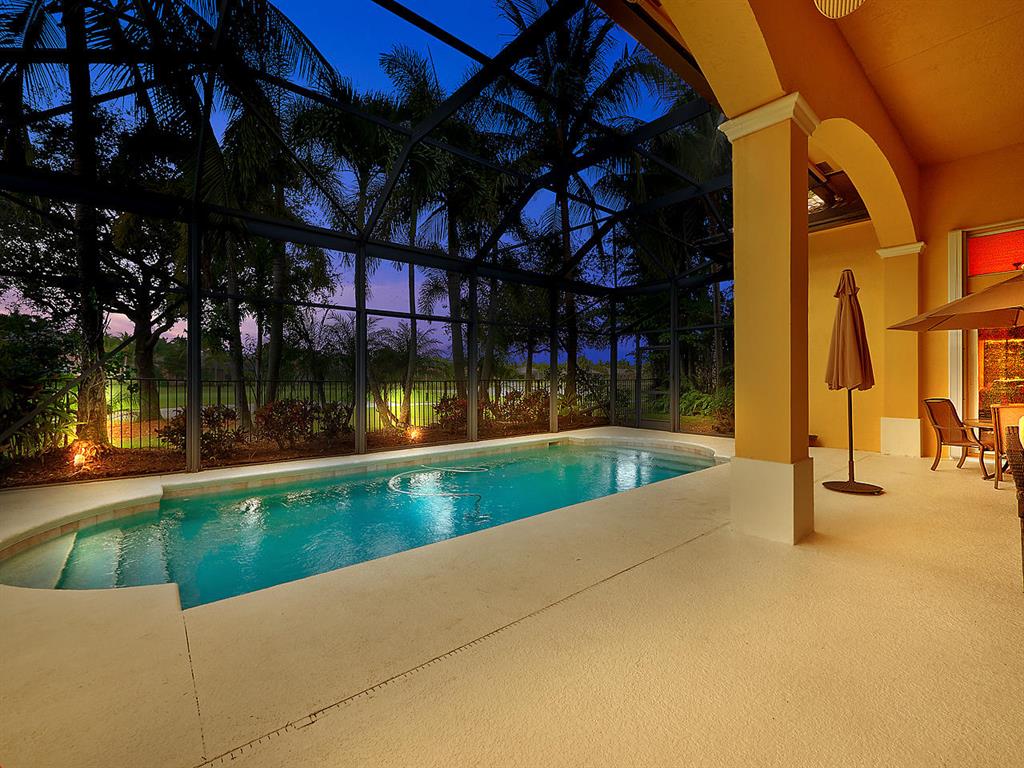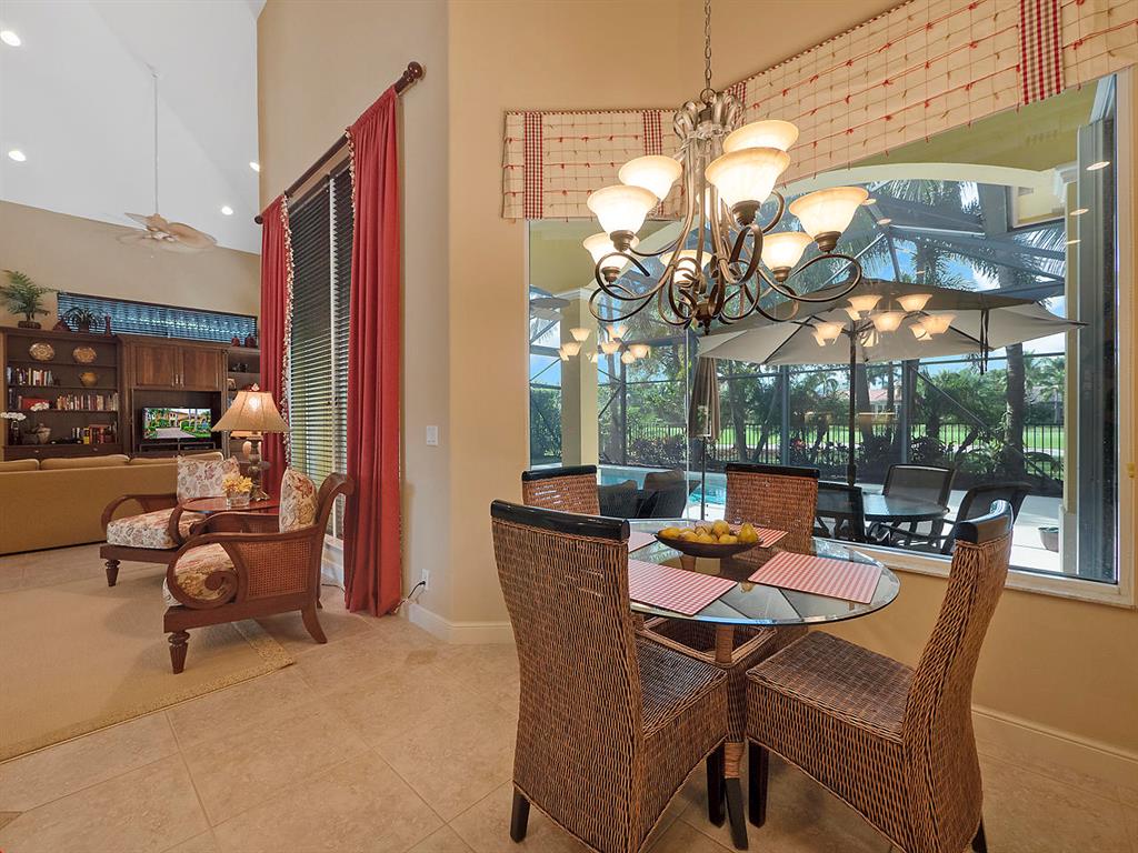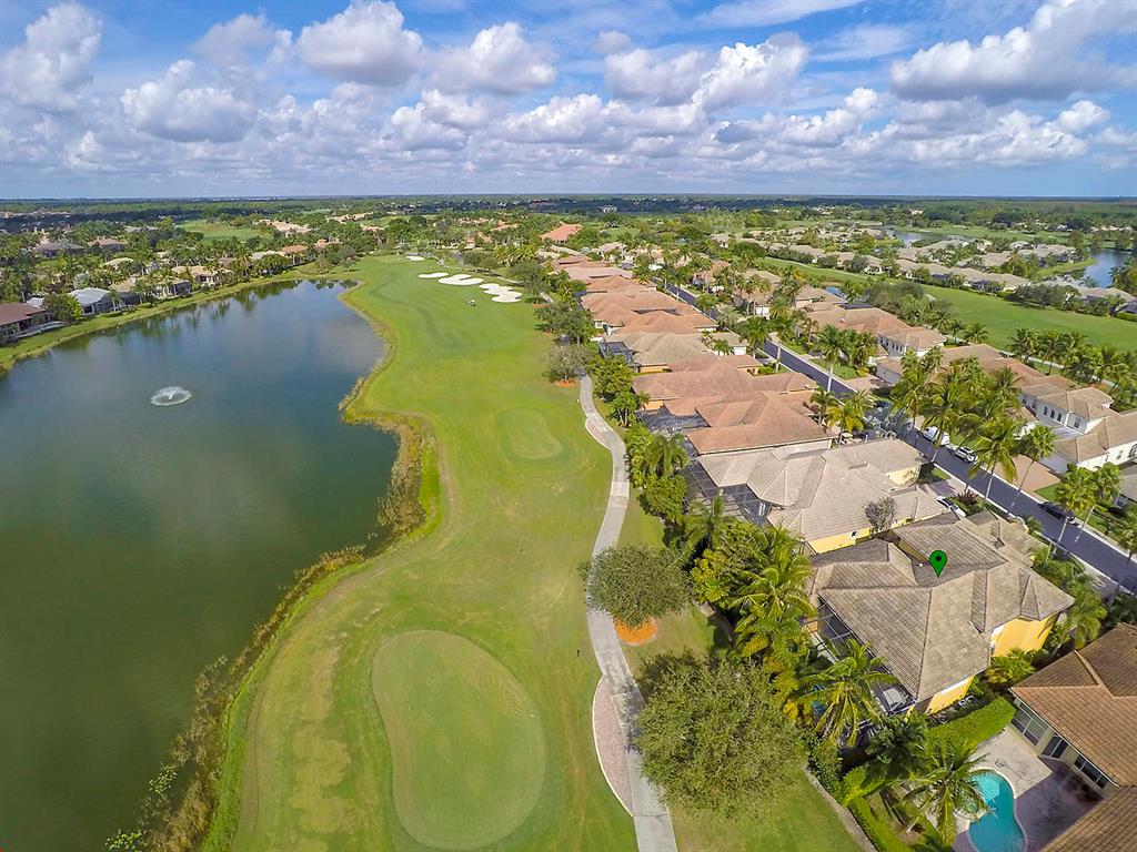 Enter this gorgeous home through double French Doors and enjoy the gorgeous view! Located on Tradition #16 followed by water and million dollar homes! The formal living and dining rooms offer crown molding, ceiling fan and a bay window. Tile floors with tumbled stone inserts everywhere except bedrooms. The 5th bedroom is used as a den. With soaring ceilings through the center of the home & Family Room the feeling of spaciousness abounds! The Family Room includes a ceiling fan & triple sliders to the pool. Off the Family Room is the Kitchen with granite counters, Double Ovens, 3 Door Stainless Refrigerator, 4 burner gas cooktop, microwave, pantry, breakfast bar, breakfast nook and desk area. Enter the Owner's Suite through Double Doors and note the decorative Niche.