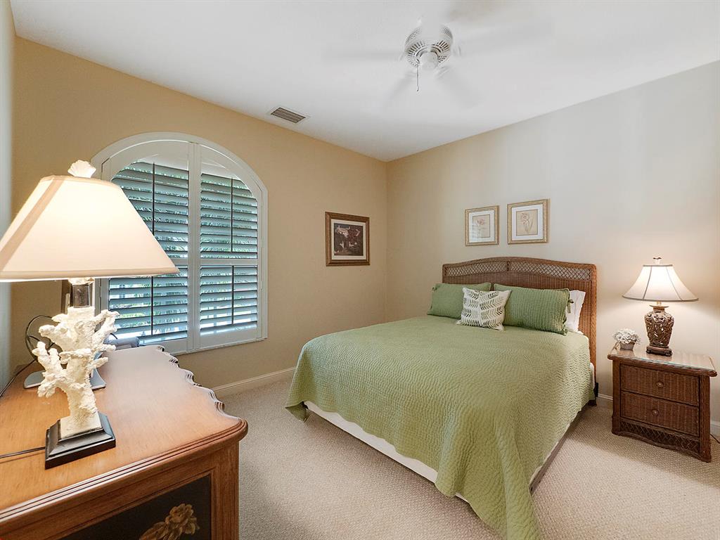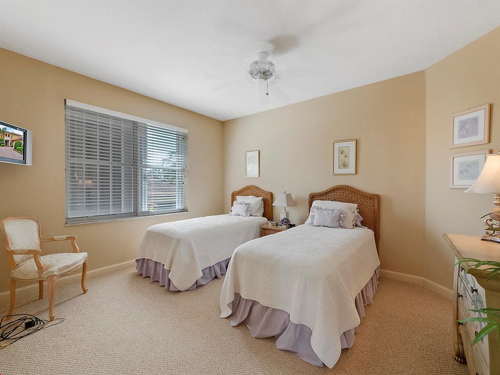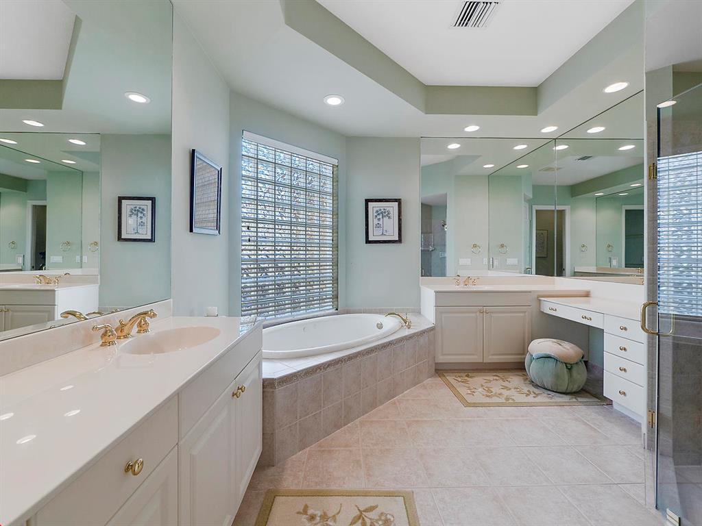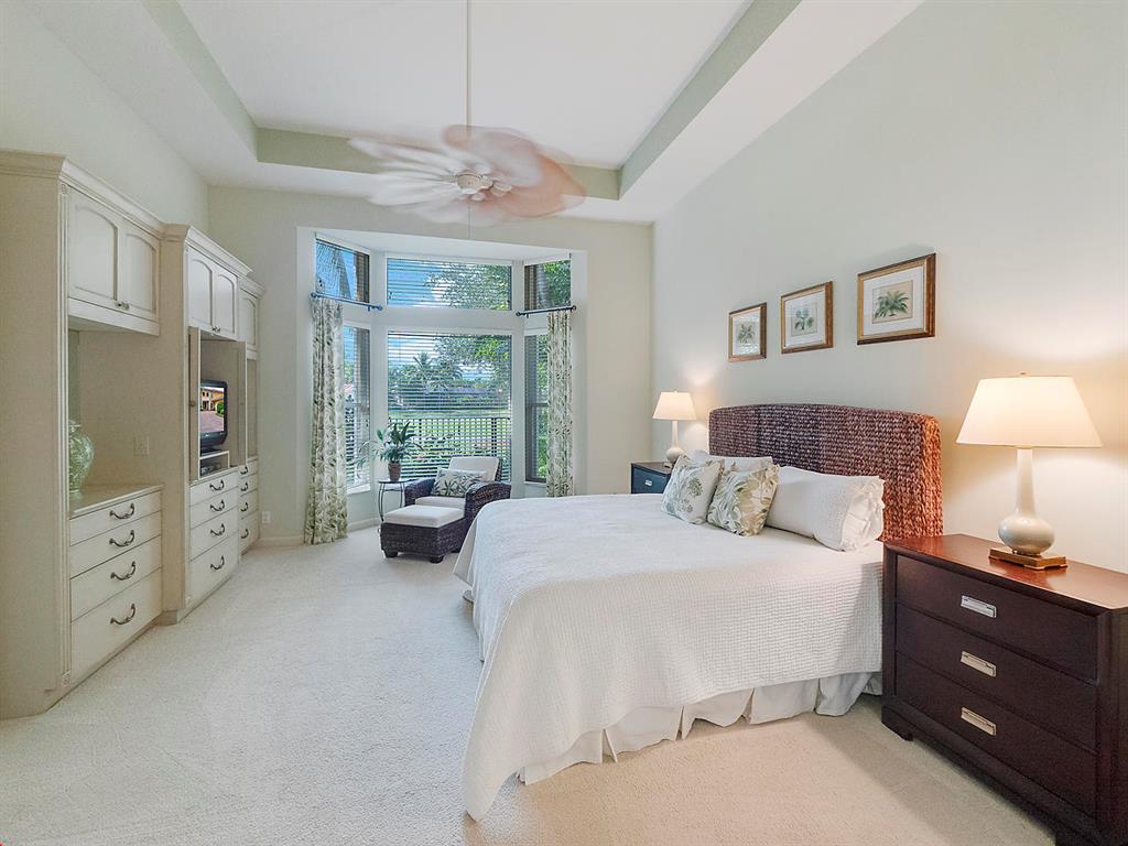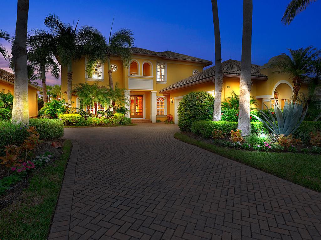 Enter this gorgeous home through double French Doors and enjoy the gorgeous view! Located on Tradition #16 followed by water and million dollar homes! The formal living and dining rooms offer crown molding, ceiling fan and a bay window. Tile floors with tumbled stone inserts everywhere except bedrooms. The 5th bedroom is used as a den. With soaring ceilings through the center of the home & Family Room the feeling of spaciousness abounds! The Family Room includes a ceiling fan & triple sliders to the pool. Off the Family Room is the Kitchen with granite counters, Double Ovens, 3 Door Stainless Refrigerator, 4 burner gas cooktop, microwave, pantry, breakfast bar, breakfast nook and desk area. Enter the Owner's Suite through Double Doors and note the decorative Niche.