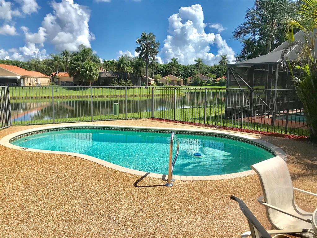 Lowest priced 4 bedroom home in gated community of Brentwood Estates w screened pool on long lake view. No mandatory membership required!Largest one story home in development. Absolutely stunning upgraded CBS 4BR/2.5BA Spanish Mediterranean home with vaulted ceilings and skylights. new kitchen cabinets, new granite countertops, state of the art stainless steel appliances, brand new custom travertine marble bathrooms, new flooring, custom plantation shutters, granite wetbar, new freshly painted interior, new Chandeliers/light fixtures & fans throughout, Brand new hurricane shutters in 2018 with free 1 year service. HOA includes lawn care, Cable TV, Internet, club house, 2 pools, tub, Tennis Ct, Basketball ct, and GYM. Pets ok. WILL NOT LAST! Video surveillance on premise as well as security