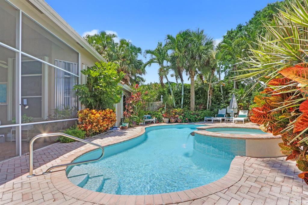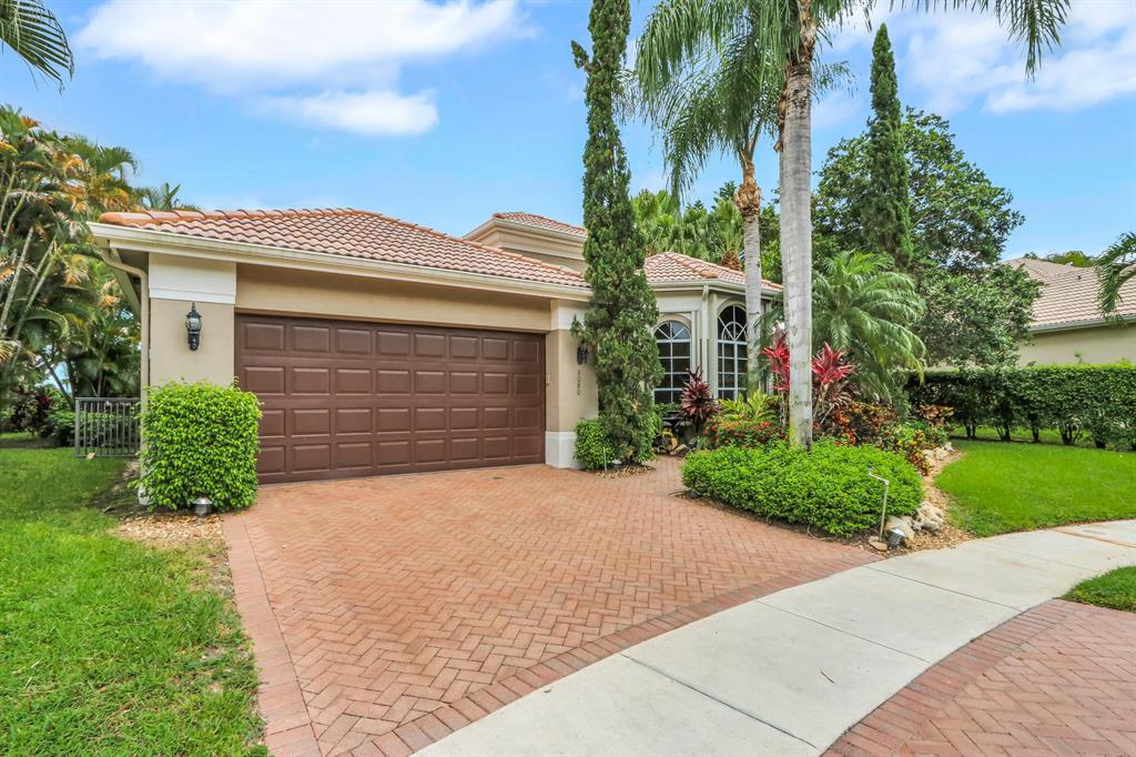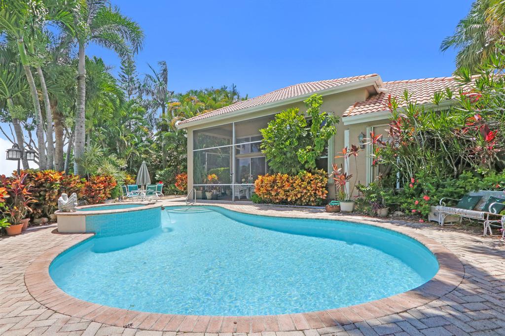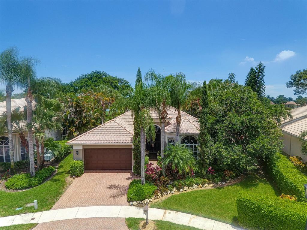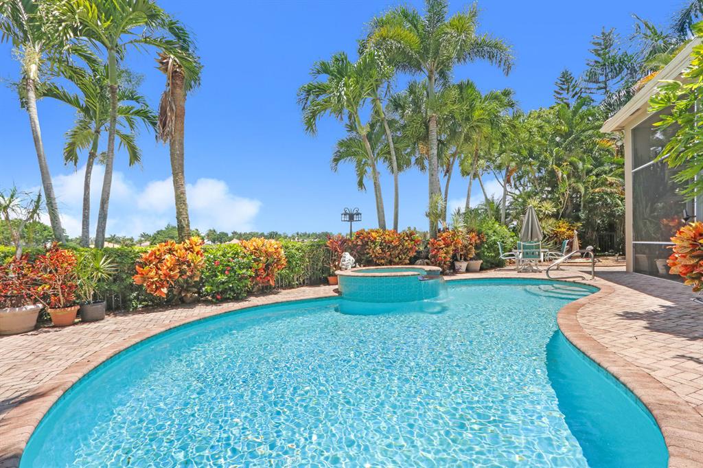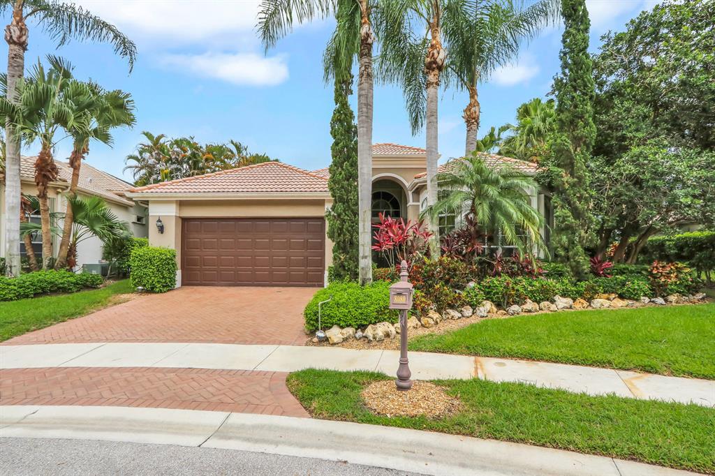 Soaring ceilings and a true great room plan with major 'wow-factor!' This 3BR/3BA+Den boasts more than 3000 square feet under air and is perfect for the buyer who wants an exceptional value for an upgraded home on a cul-de-sac golf course lot. Conveniently located in Ibis's Sandhill Trace neighborhood, this home showcases marble floors in main living areas. The kitchen boasts handsome cabinetry and granite along with stainless steel appliances. The large great room has coffered ceilings, elegant crown moldings and a sunken bar that is perfect for casual or formal entertaining. The screened patio overlooks the pool and spa area, with Jack Nicklaus's recently redesigned Legend Course (#17) as a dramatic backdrop. A stately home on a grand scale located on a premium lot.