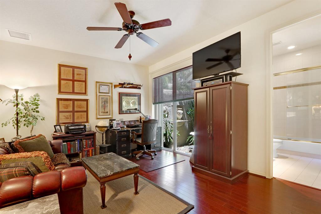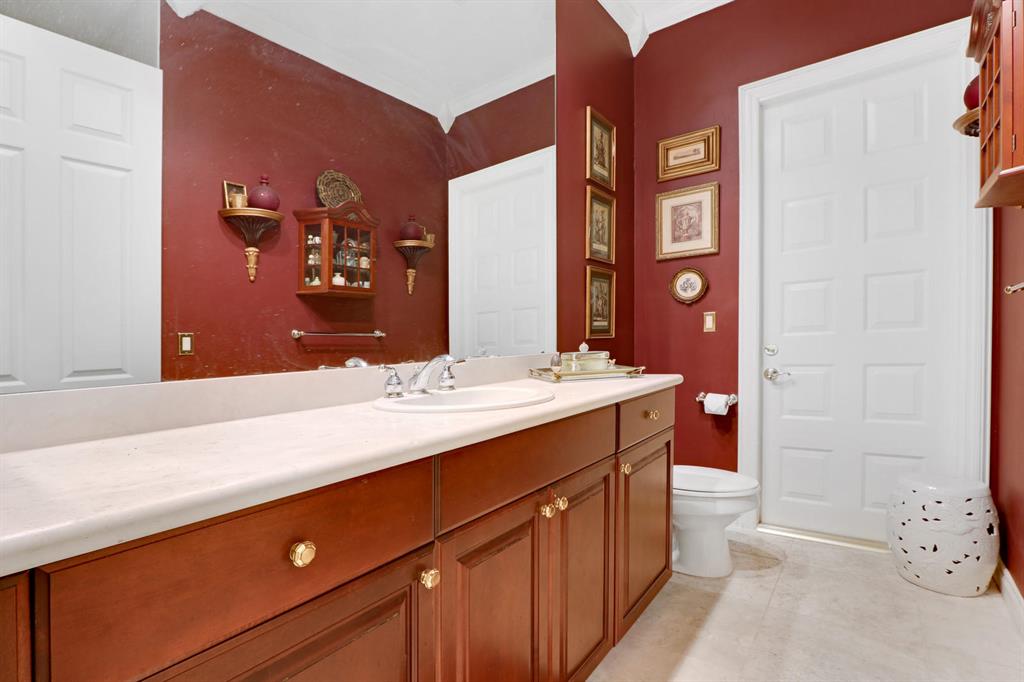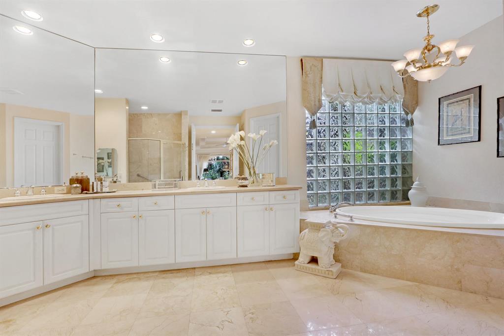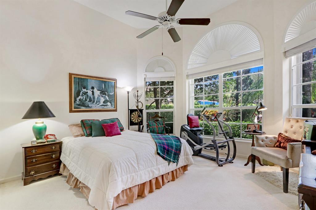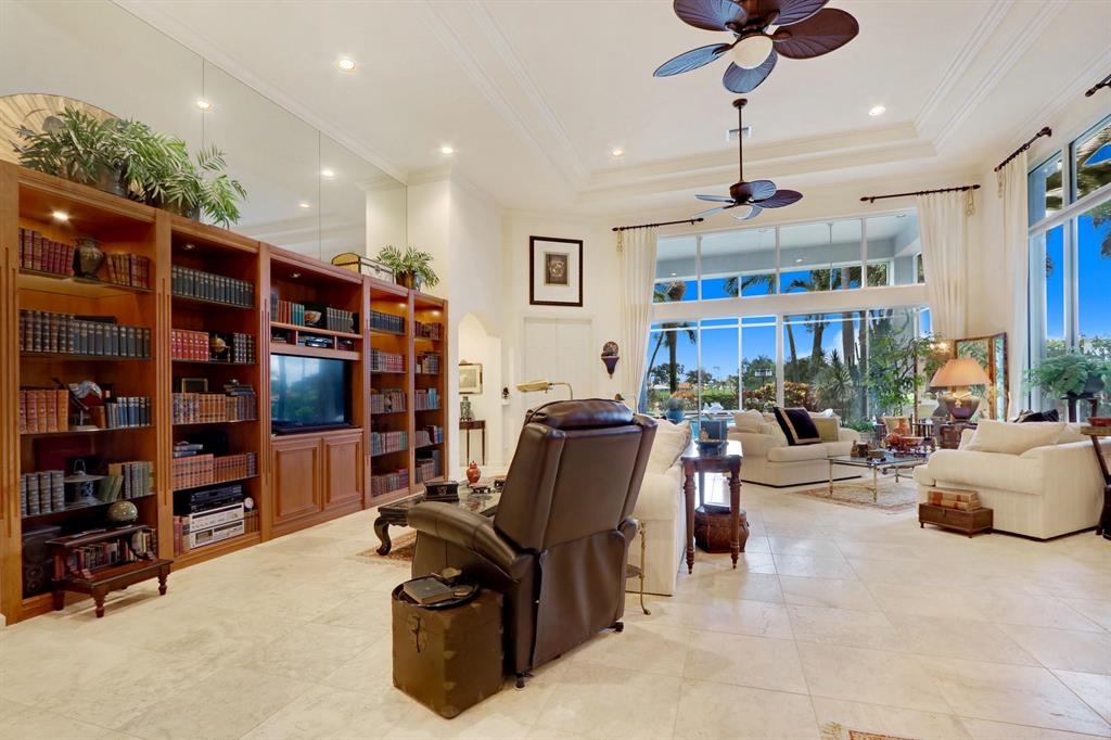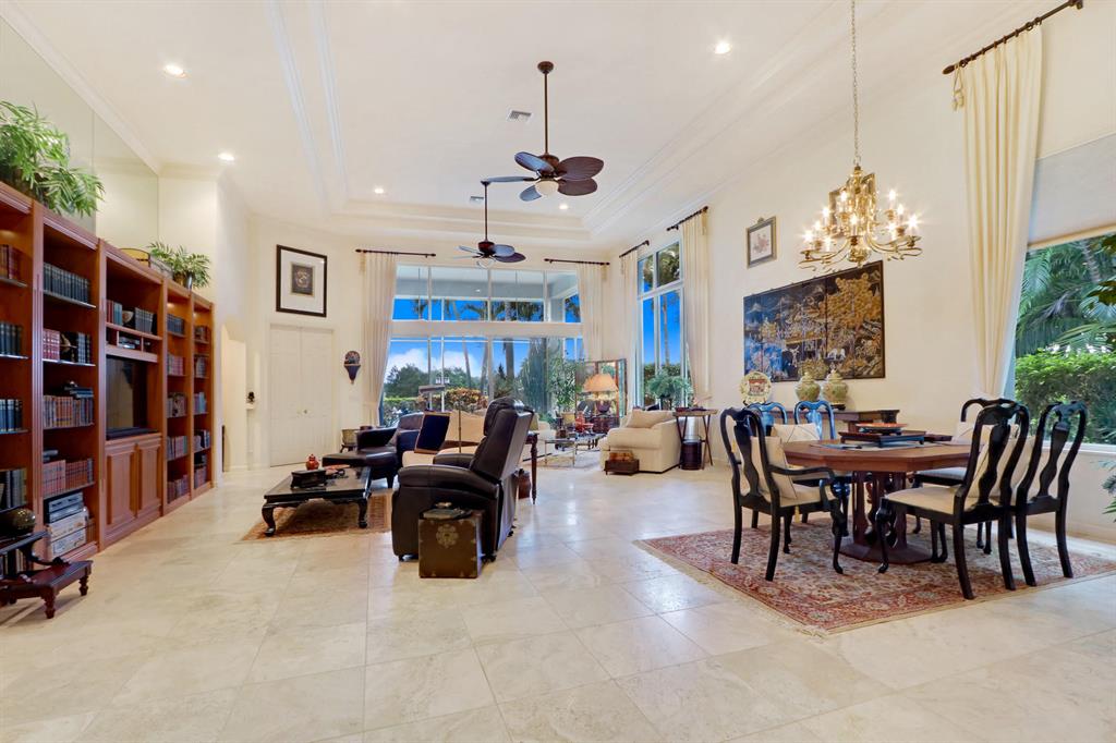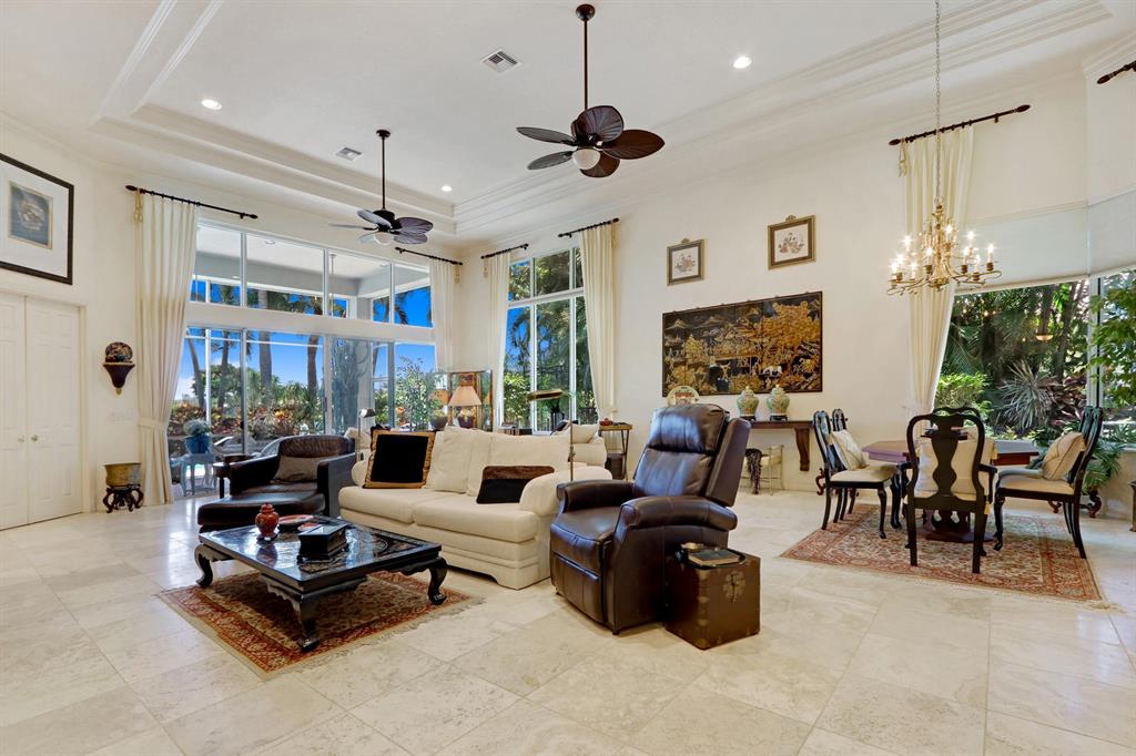 Soaring ceilings and a true great room plan with major 'wow-factor!' This 3BR/3BA+Den boasts more than 3000 square feet under air and is perfect for the buyer who wants an exceptional value for an upgraded home on a cul-de-sac golf course lot. Conveniently located in Ibis's Sandhill Trace neighborhood, this home showcases marble floors in main living areas. The kitchen boasts handsome cabinetry and granite along with stainless steel appliances. The large great room has coffered ceilings, elegant crown moldings and a sunken bar that is perfect for casual or formal entertaining. The screened patio overlooks the pool and spa area, with Jack Nicklaus's recently redesigned Legend Course (#17) as a dramatic backdrop. A stately home on a grand scale located on a premium lot.