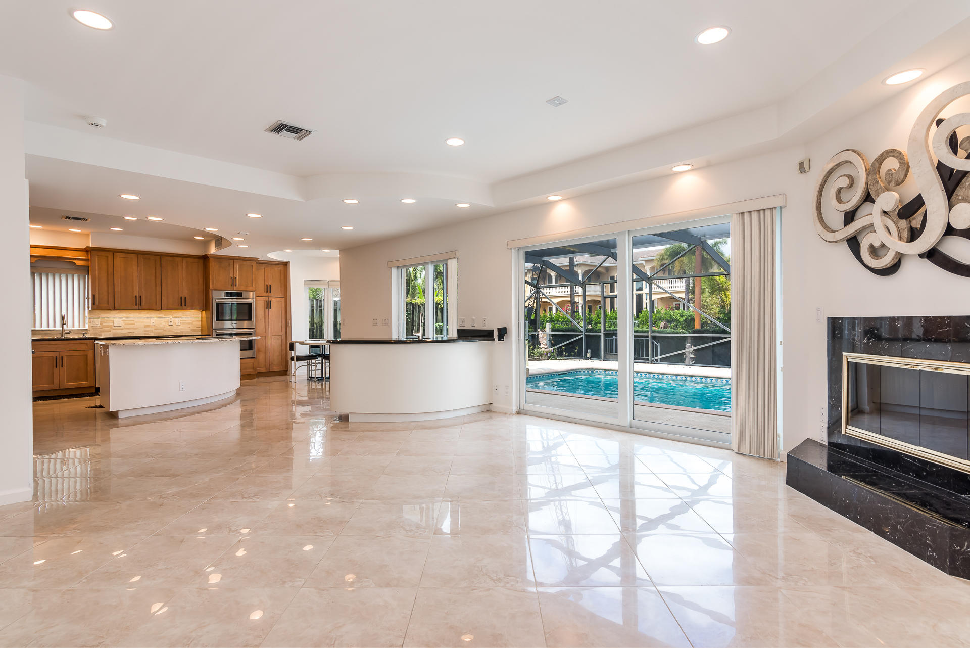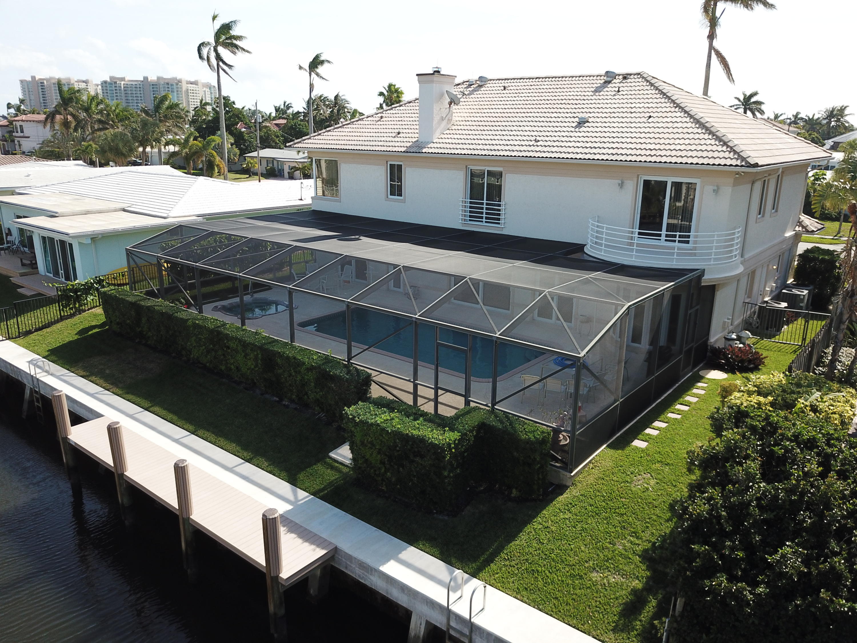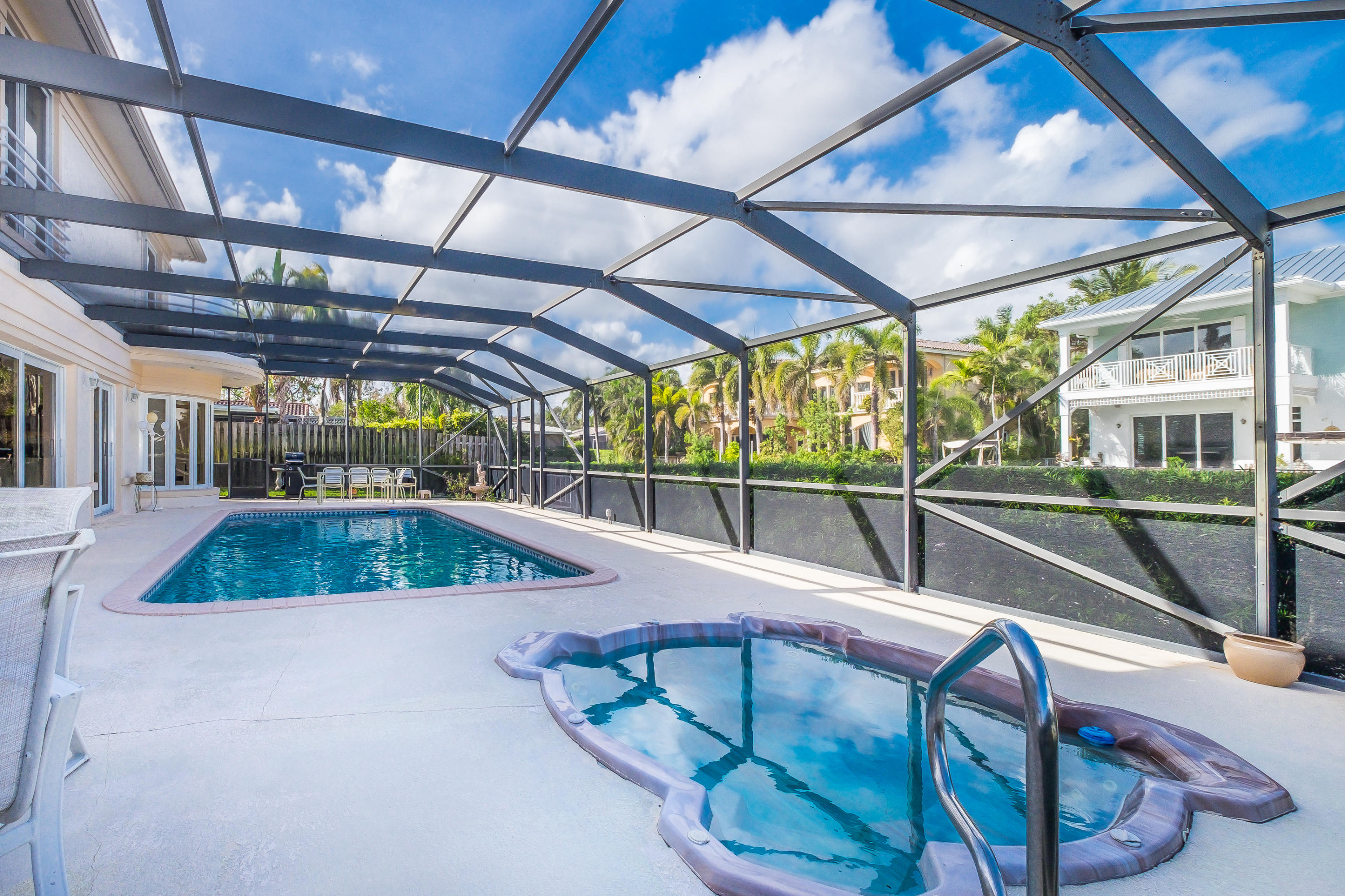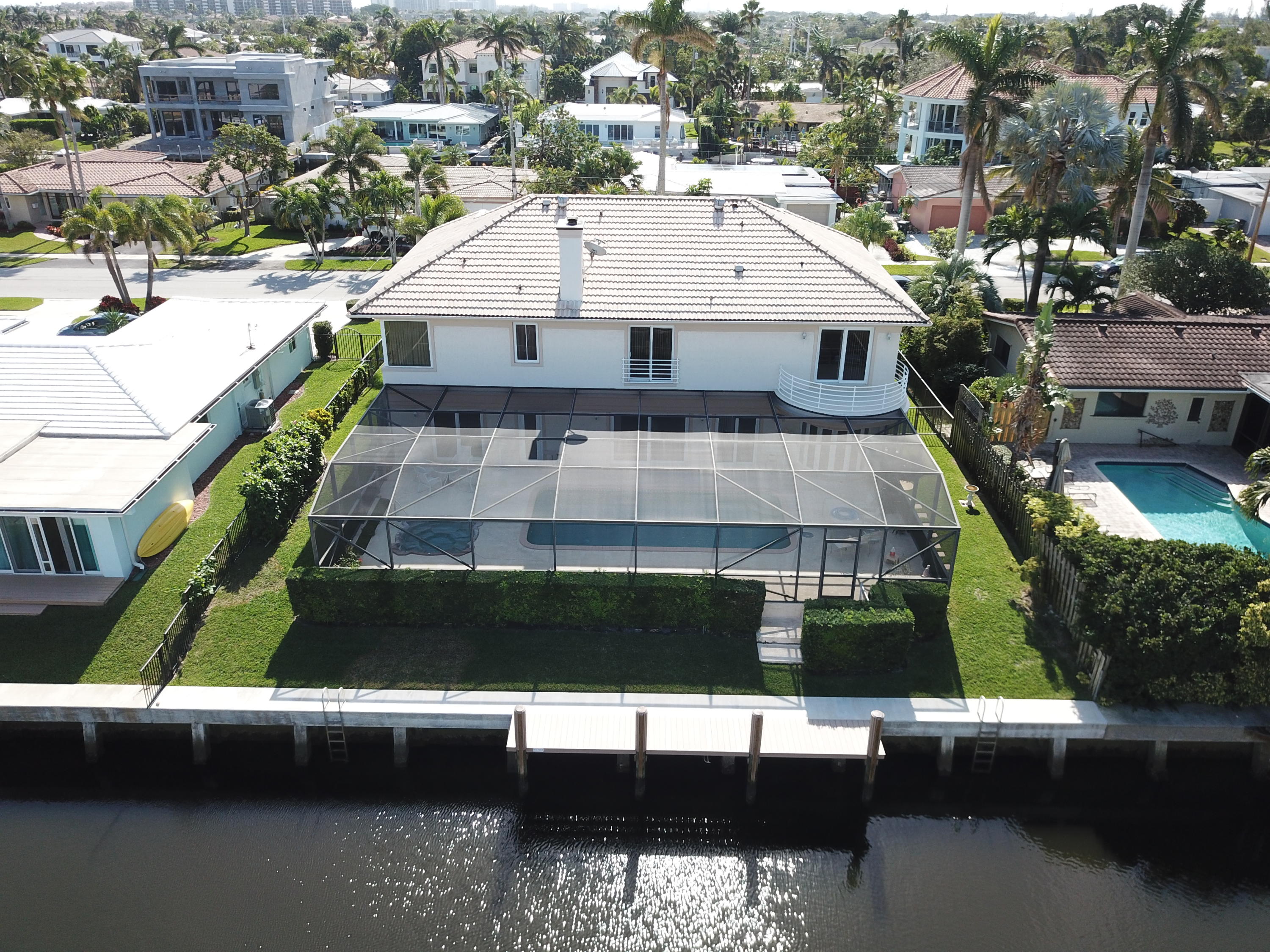 Priced To Sell! 5 Bedroom 3 Bath home with 80' of waterfront, updated kitchen with beautiful cabinets and countertops, stainless steel Bosch & LG appliances, vented island cooktop, porcelain tile. Impact Windows & Doors, Composite Dock with Cap & Batter Pilings 2016', Air Conditioners replaced 13' & 14', security system. Bright and Open family room with wood burning fireplace, formal living room, formal dining room. Huge master suite upstairs with 3 additional large bedrooms & bath, guest bedroom downstairs with full bath. Expansive screened in pool & patio area with in ground spa. Ocean Access with no fixed bridges makes this a boaters dream estate. House is impeccably maintained. This listing is subject to error, omission and change without notice-all sizes approximate.