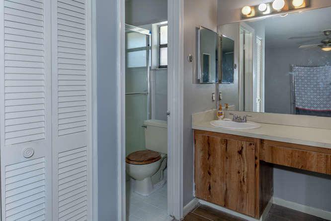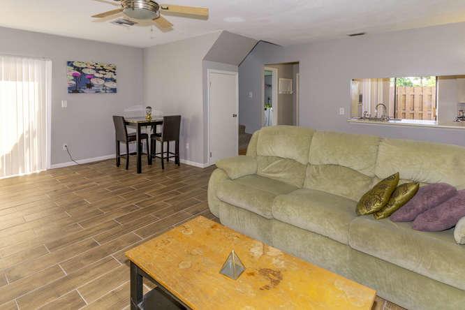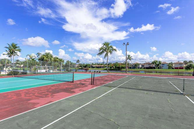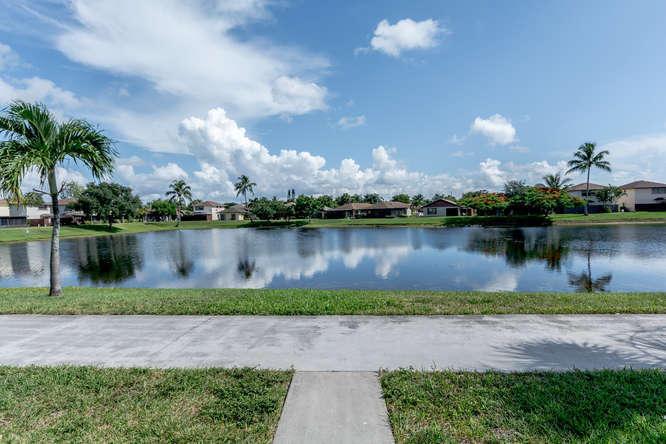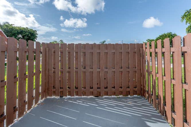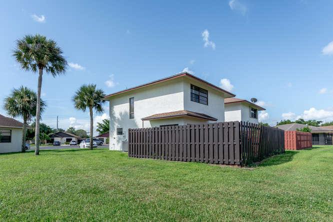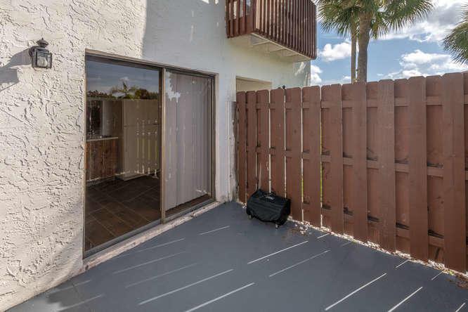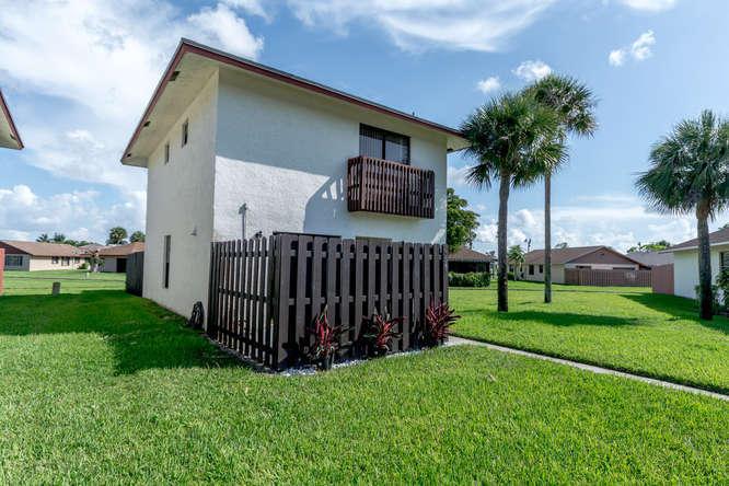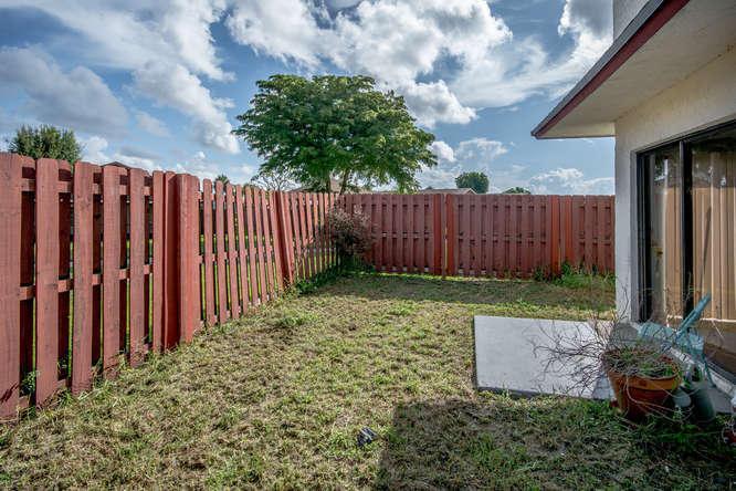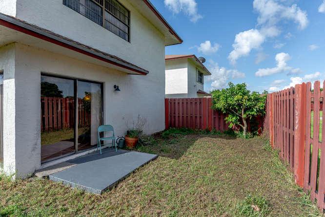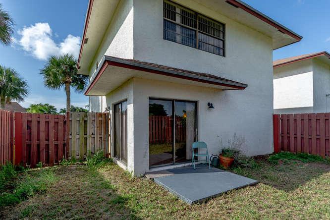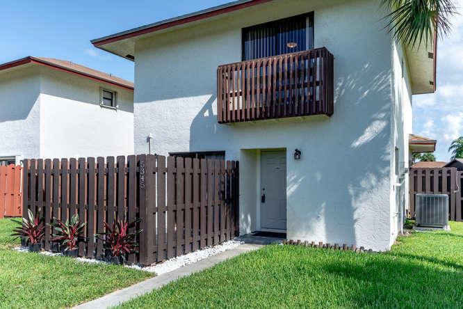 LOCATION-LOCATION-LOCATION Be in the heat of it!,, minutes to the airport , City Place, Palm Beach and the amphitheater this SINGLE FAMILY HOME has it all.The light and bright home is located on a cul de sac with its own private parking. It has a very fresh look as it has been recently painted and has new wood like porcelain tile floors throughout the home.There are 2 bedrooms,2 1/2 baths with a beautiful patio area off the kitchen and a completely fenced in back yard. Low HOA fees and a community spirit offering a very safe and secure setting. Rentals not allow.
