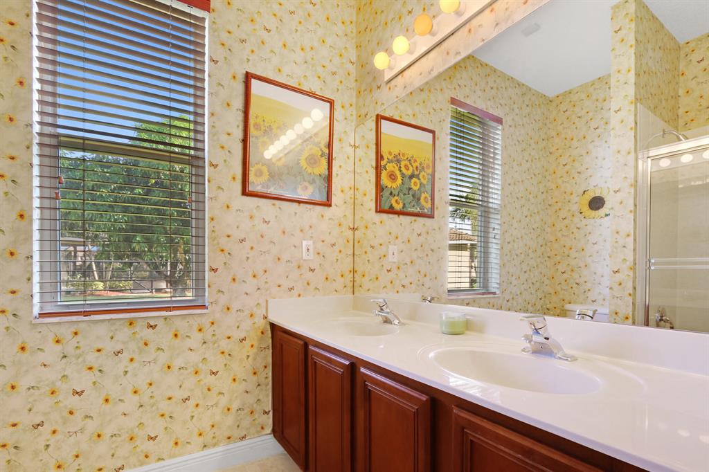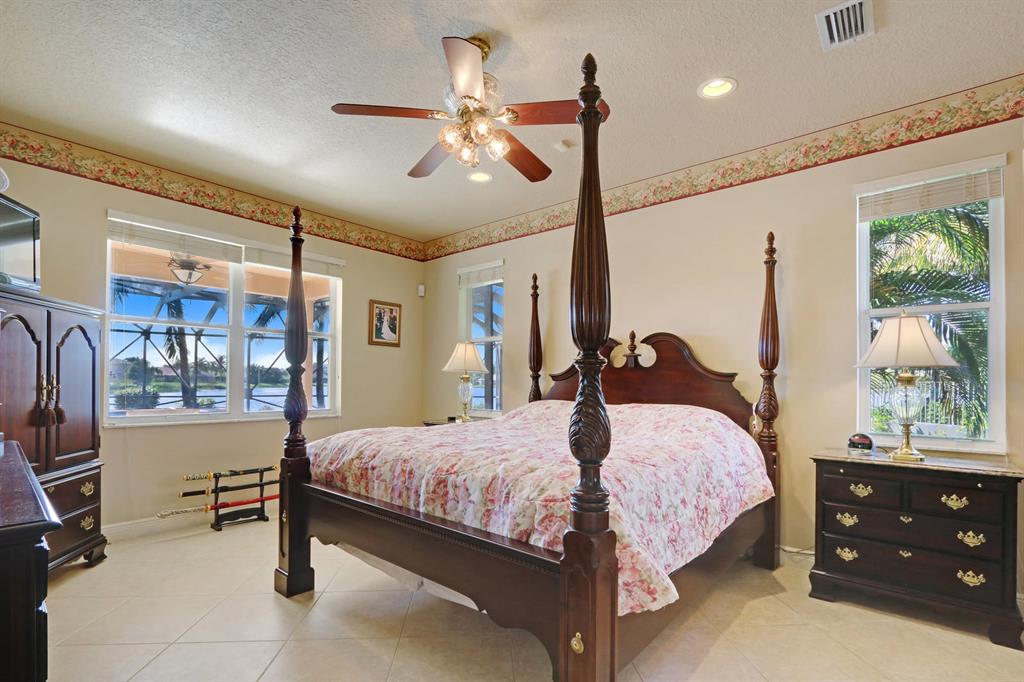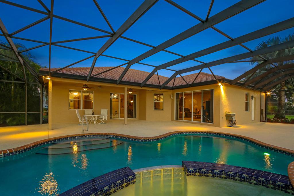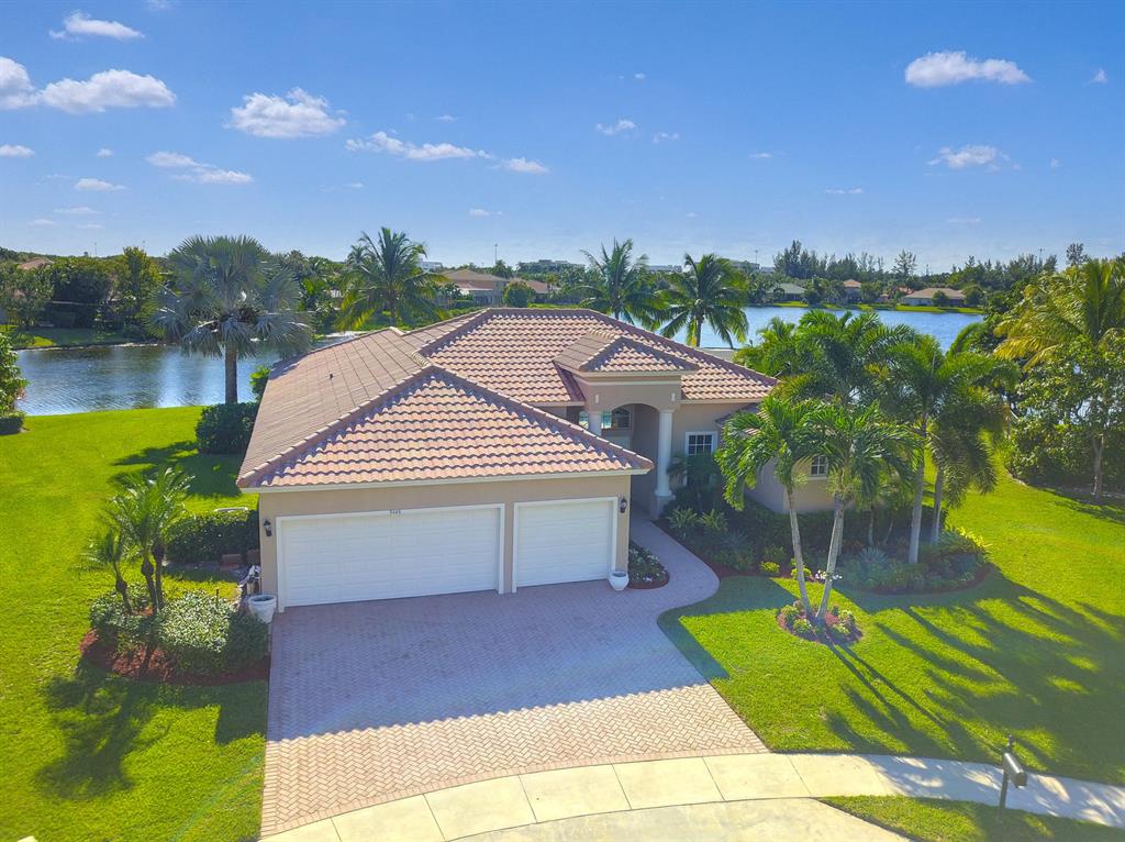 Beautiful 4 bedroom + office, 3 bathroom home with a large 3 car garage on a prime waterfront lot. Stunning panoramic lake views from thru-out the home with a screened lanai area and pool. Just wait until you see the gorgeous sunsets from your patio! The spacious one-story home features tile flooring thru-out the living areas, formal dining area, large family room room and split bedroom floor-plan. You will absolutely love the lake views from the 2,185 sq ft screen enclosure! Gorgeous .35 acre cul-de-sac lot. Other recent upgrades include: Roof replaced in 2006, Exterior house painted in 2018, A/C replaced in 2016, and irrigation is from the lake. Fantastic gated community with excellent schools nearby and just a short distance to Wellington Green Mall.