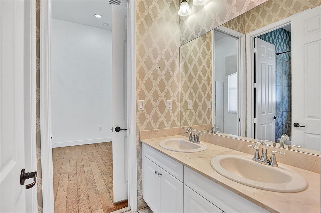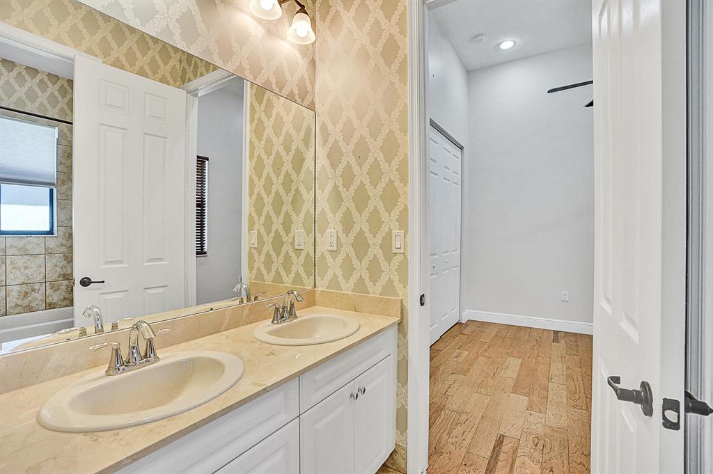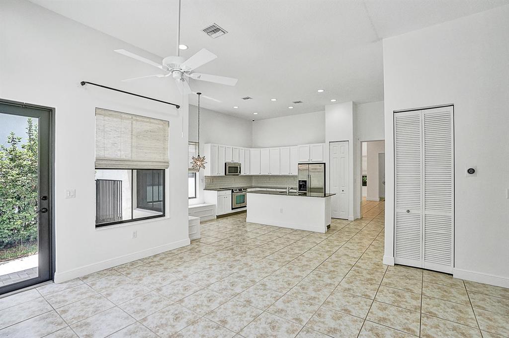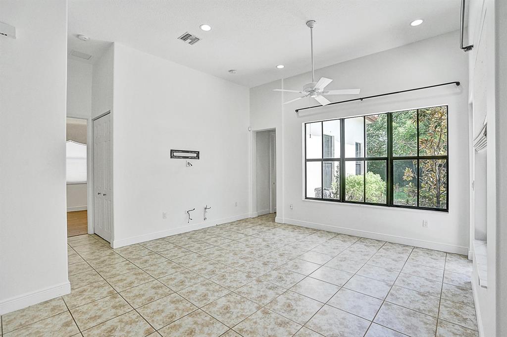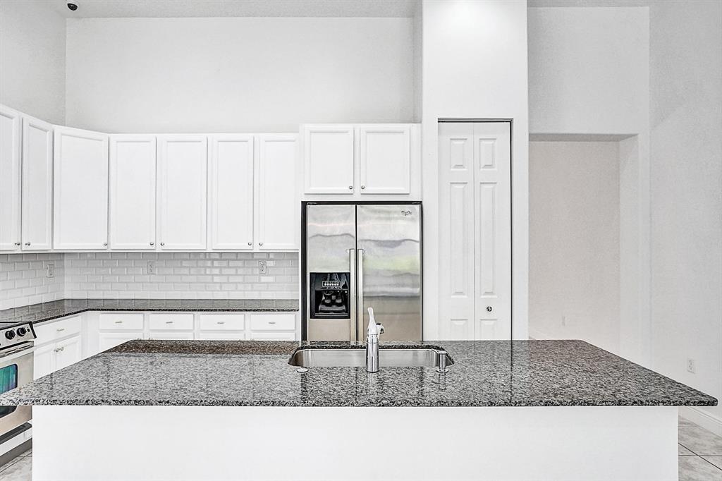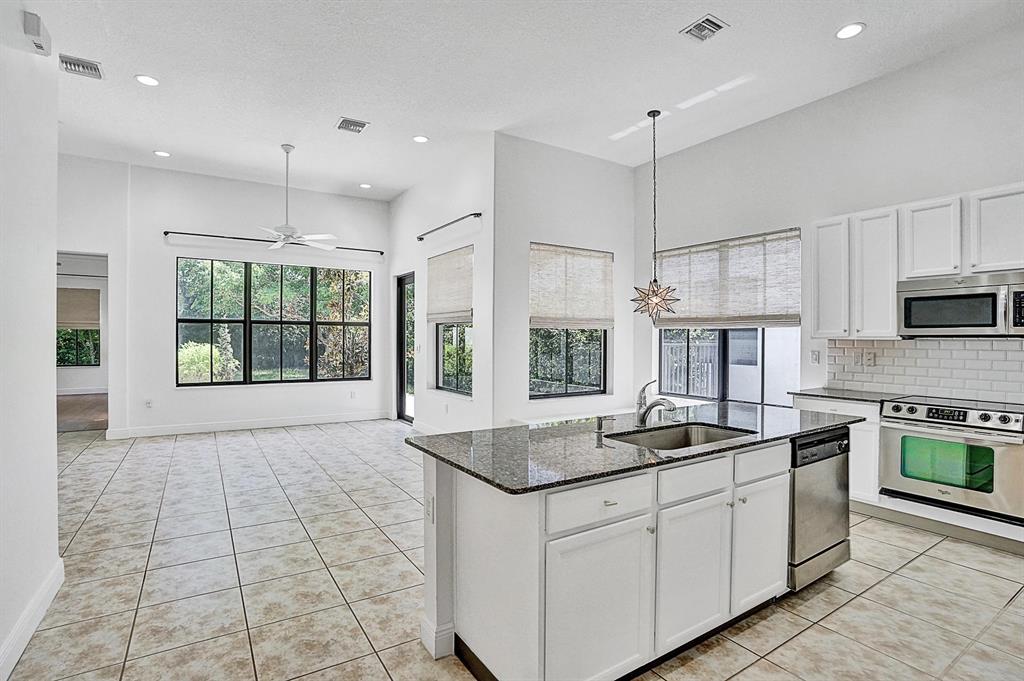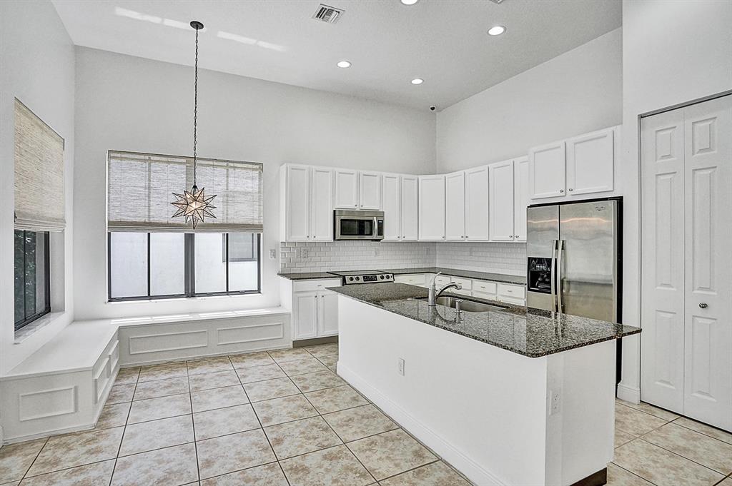 Rarely available this 3 bedroom 2 1/2 bath, Anacapa model in desirable Gated Monterra Community. Beautiful private and fenced yard, tile and wood flooring thru-out; formal living & dining rooms, open kitchen with white cabinets & granite counter tops, stainless steel appliances, center island and eat-in kitchen with banquet seating open to family room, high ceilings, master bedroom with tray ceiling, large walk-in finished closet, Master bath with jetted tub, 2-car garage with built in storage, laundry room with laundry tub and overhead cabinets, all designer window treatments, open patio. Hurricane protection on all openings. Manned gated entrance, clubhouse, pool, tennis, business center, gym, basketball and lots more,