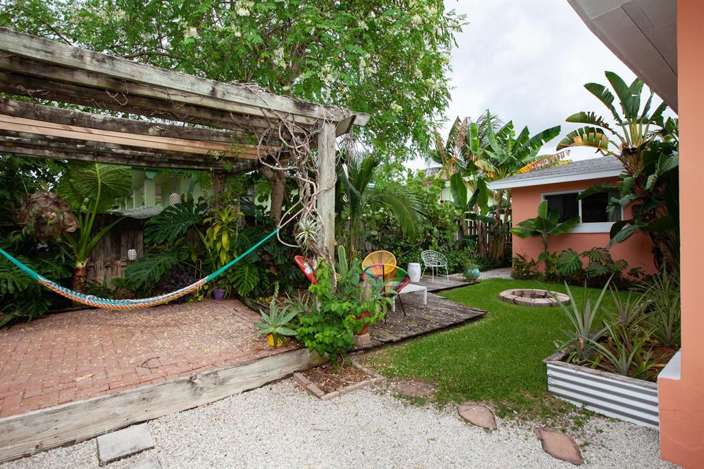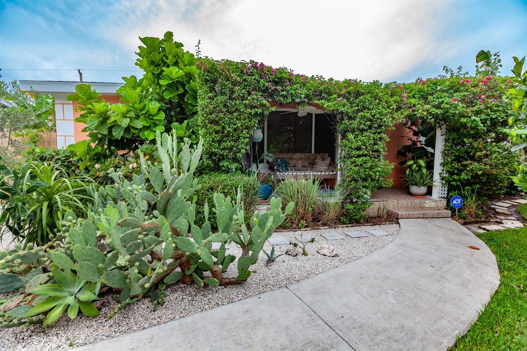 A magical three bedroom, two bath home within a park like setting. This artistically designed and decorated home is surrounded by lush landscaping with an abundance of flowers and fruit tress. You'll feel like you're on vacation as soon as you turn into the driveway. Perched in this little known neighborhood with an entrance to the park at the end of your street, there is only one way in. Just walk to Palm Beach Zoo and the Science Museum at Dreher Park. The home features Terrazzo floors, large oversized soaking tub to destress and make the world go away, gas range, impact windows, one of the most unique ceilings I've seen in the family room that allows even more natural lightening into this home. Your home searching quest may be over once you view this beautiful home.