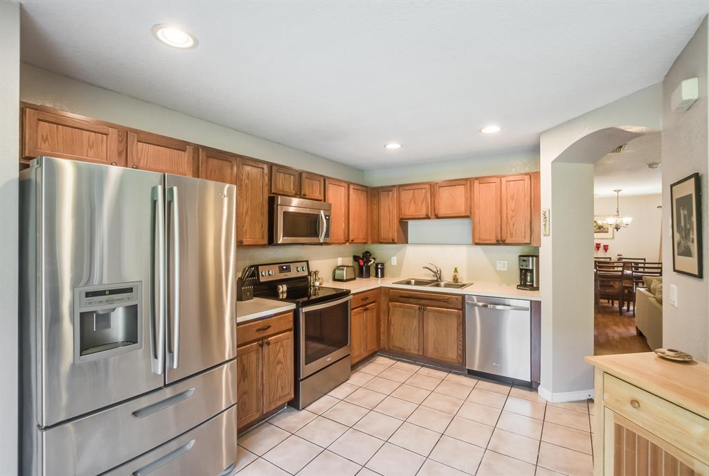 This Stunning home awaits you! Large, Sun-drenched rooms. Spacious Kitchen w/wood cabinets, stainless steel appliances and breakfast area. Master bedroom & bathroom are fit for a King. Custom wood wall in the master bedroom can serve as a decorative art piece, headboard or accent to any bed frame. Renovated Master Bathroom w/dual sinks, granite counters, wood cabinets & a large walk-in shower. Living Room & Dining Area feature laminate flooring and an open floor plan. Renovated half bath on first floor. Bonus open loft upstairs is the perfect home office, playroom or den. Oversized screened patio adds additional living space & makes outdoor entertaining possible year-round. Freshly painted. Attached garage. 2 car driveway. Accordion Shutters. Fabulous, family-friendly community.