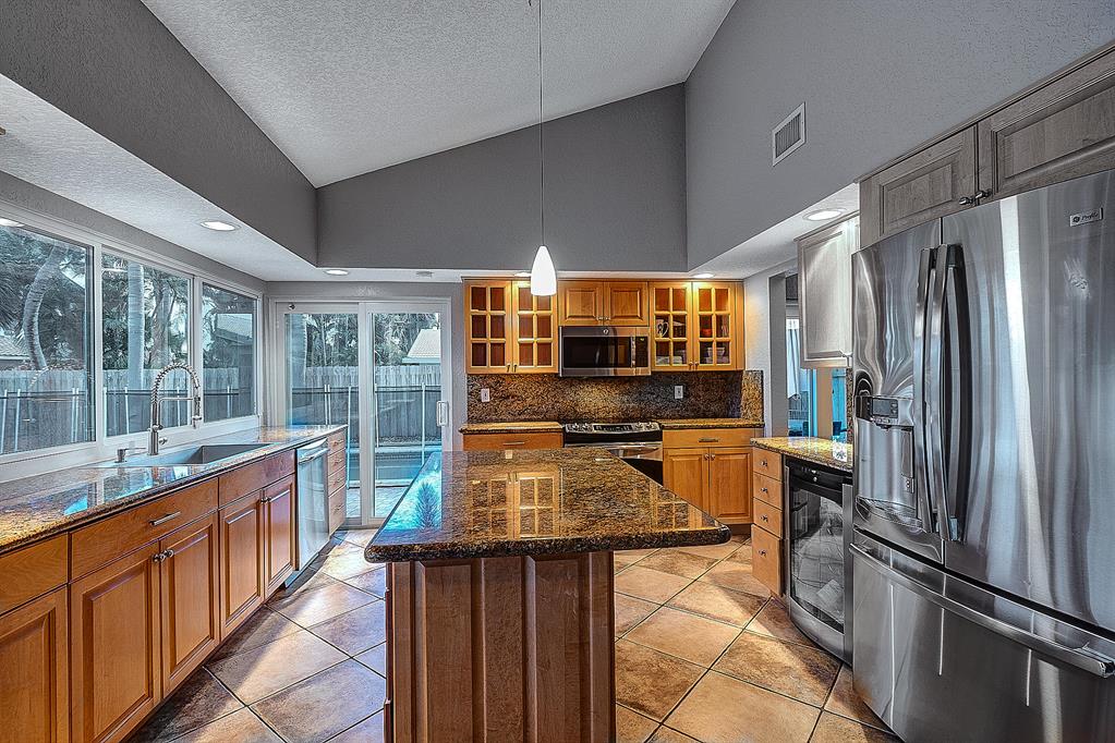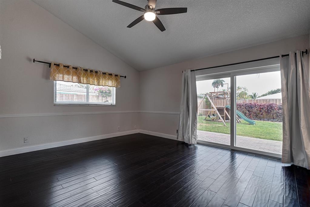 Not your typical 3/2 Boca Square home! Vaulted ceilings in Family Rm, Kitchen, Living Rm, Dining Rm & Master! Wood Burning Fireplace with brick chimney! All Hurricane Impact Windows & Doors~Hurricane Impact Glass Front Door! Hurricane Rated 2 Car Garage door~Updated kitchen w/stainless steel appliances, wine frig, abundance of cabinets~Lg master w/beautifully updated bathroom~2 walk-in closets~Wood & tile floors throughout~AC installed June 2017~Newer Washer & Dryer~Security Alarm~Lg L-Shaped Pool w/Child safety fence~Paver patio~Larger Lot 90 x 119! Very Private Fully fenced yard with preferred Southern Exposure. Great curb appeal & low traffic street! ''A'' rated schools. Minutes to beaches, shopping, restaurants & downtown Boca. Shows beautiful! Vacant EZ to Show!
