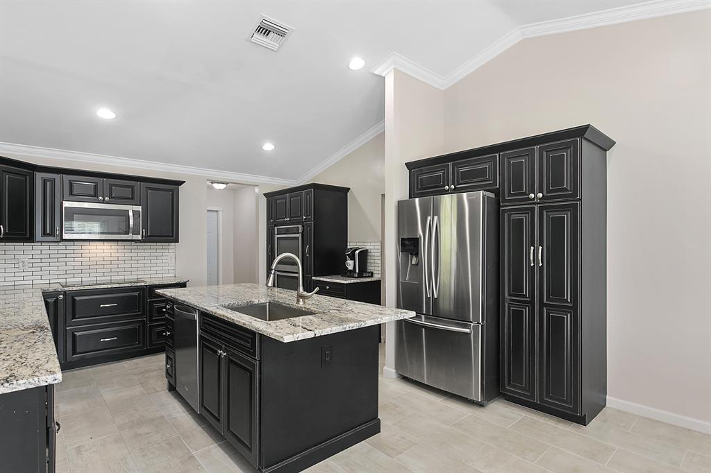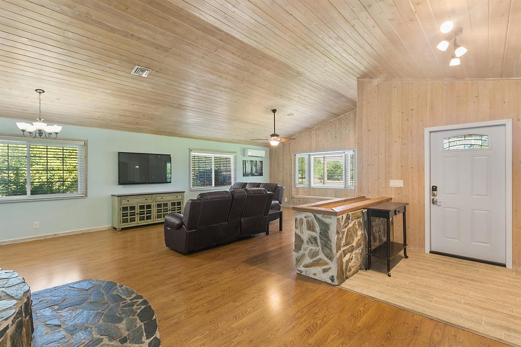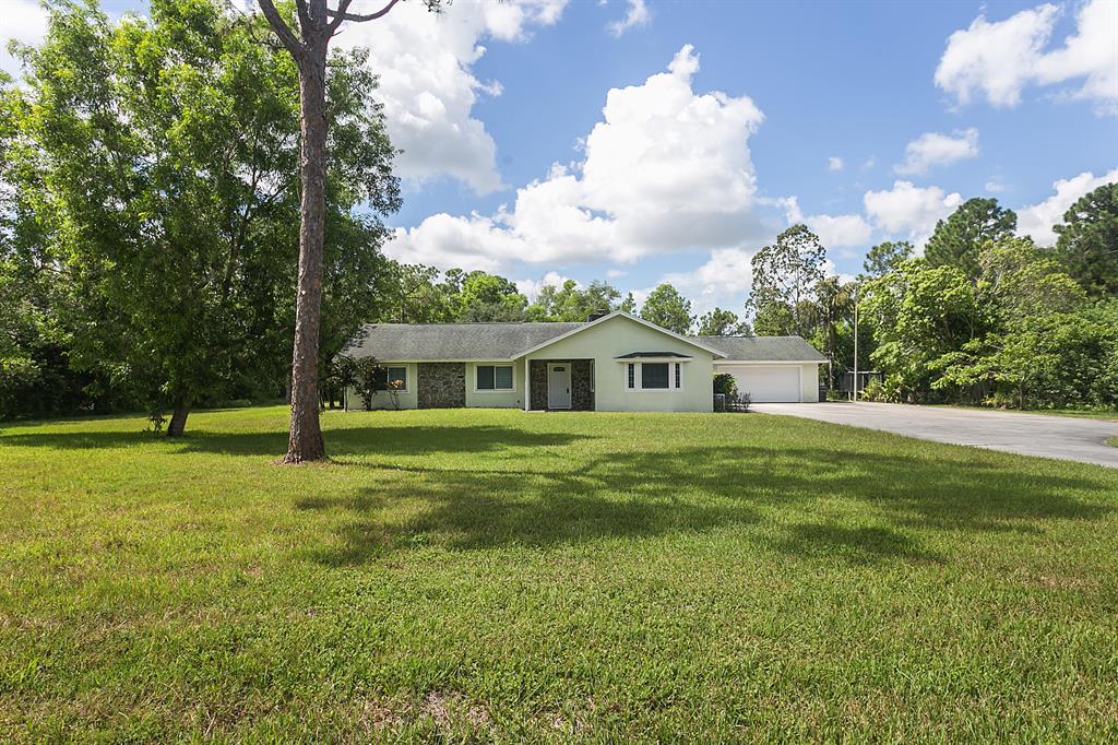This beautiful 3 Bedroom/ 2 bathroom home sitting on 1.87 acres with a fenced in property and a stocked pond. Home features- Impact Glass Windows/ Sliders throughout house that makes the house sound-proof from outside noises, Brand New Custom Kitchen, wood cabinets, granite counter-tops, stainless steel appliances. blue slate fireplace, white wash tongue and grove vaulted ceiling, tile and wood floors. included washer/ dryer and security cameras that alerts your phone. On paved road and much more! Come by and check it!