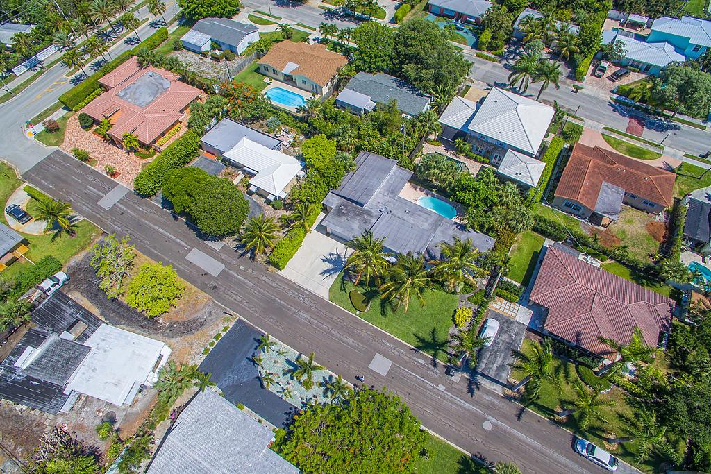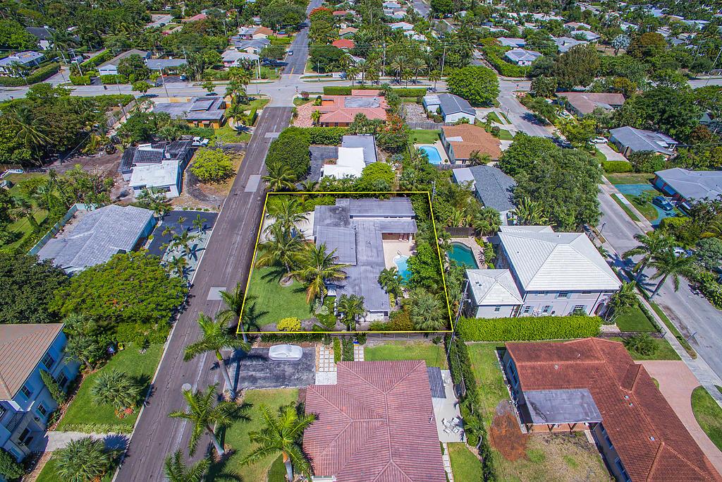 Cool and eclectic, this mid-century modern 3 bedroom, 3 bath home rests on a quiet cul-de-sac street, east of Olive Avenue in the highly desired South of Southern Blvd (SoSo) area. This home incorporates a split floor plan, open kitchen, separate dining and living areas as well as a large master bedroom with double doors leading out to a covered patio and private pool. The uber-private backyard exudes South Florida lifestyle with its welcoming patios and lush landscaping.