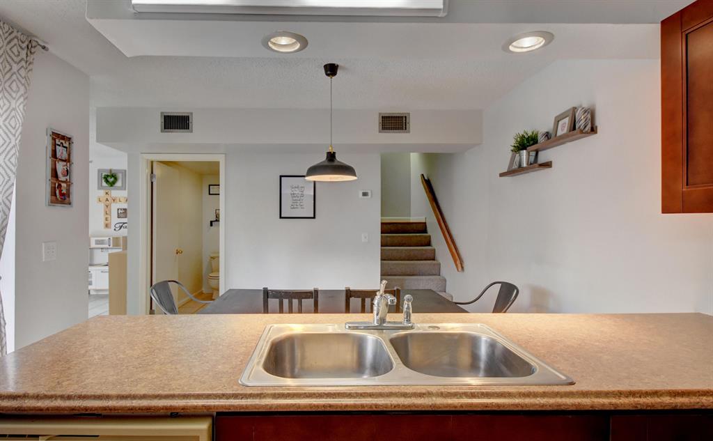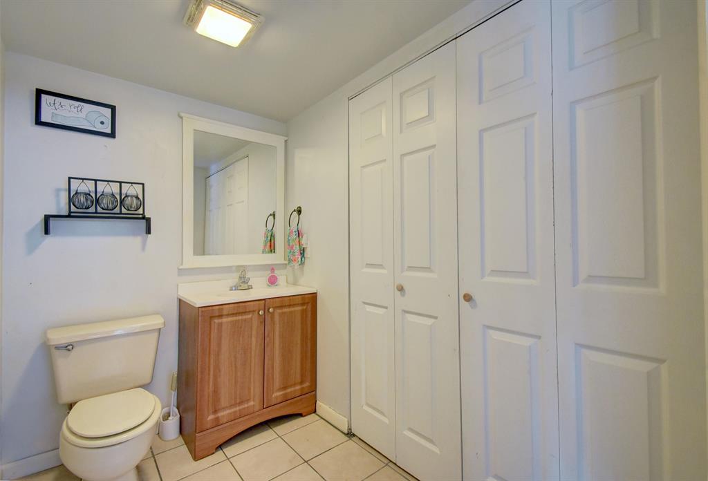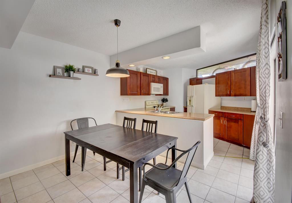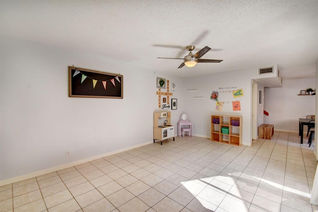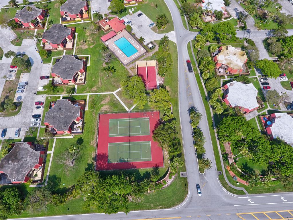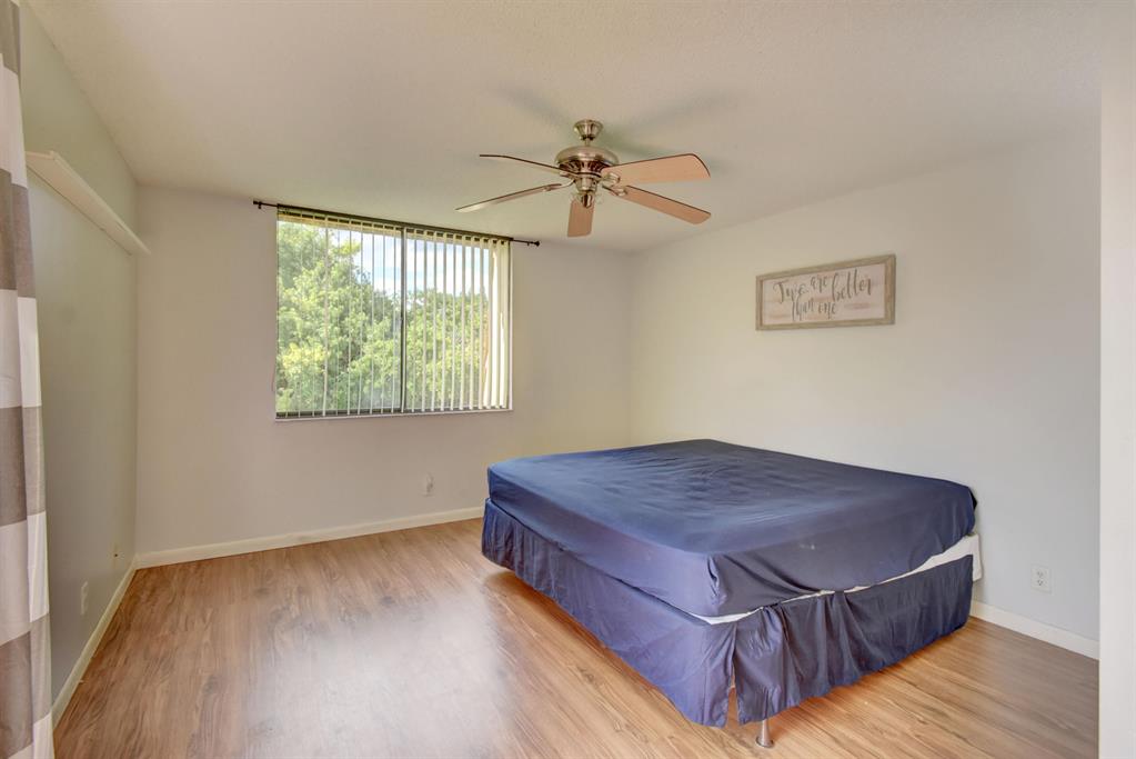 Tucked away, quiet 2 bedroom/2.5 bath Townhome with terrific flow and light in FAMILY AND PET FRIENDLY neighborhood. Private, fenced courtyard patio with UV protection sail shades; large, off-the-beaten track grassy area next to Townhome with woodsy views. Lake is steps away. Neutral tile on first floor; laminate in both bedrooms. Open kitchen (upgraded cabinets and countertop) with separate eating area; downstairs guest bathroom; walk in closets.Each bedroom has its own bathroom and shares a Juliet balcony (with patio weave privacy screen) offers great views; Community pool, tennis and racquetball. Low HOA. Great central location with EZ access to Turnpike, I95, Town Center Mall, beaches, shops and restaurants. 'A' rated schools and walking distance to the elementary school.