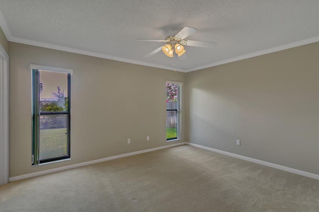 An oversized private lot surrounds this spacious & airy, beautifully maintained 3BR/2BA traditional ranch-style home, offering incredible opportunities for family entertainment and outdoor living. The interior features an open entry-level living space, crown molding throughout, plenty of closet space, carpet and tile flooring, master bedroom with nicely appointed en suite, full-size walk-in closet, windows overlooking the lush backyard, large guest bath with combo tub/shower, plenty of windows allowing in tons of natural light, large slider to the back patio and beautifully landscaped yard. The kitchen features large island-style counterspace w/cooktop oven, pantry, SS farm-style sink, tile backsplash and custom light fixture. Conveniently located in a quiet neighborhood w/NO HOA in the