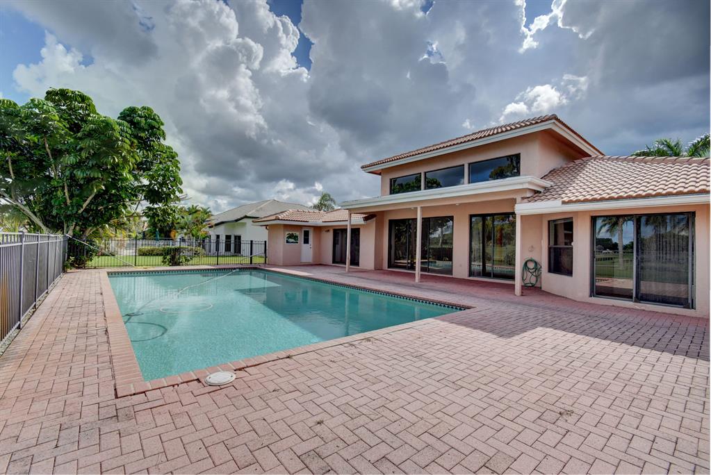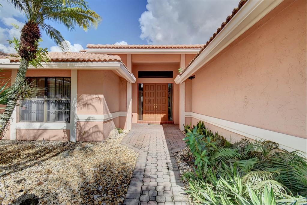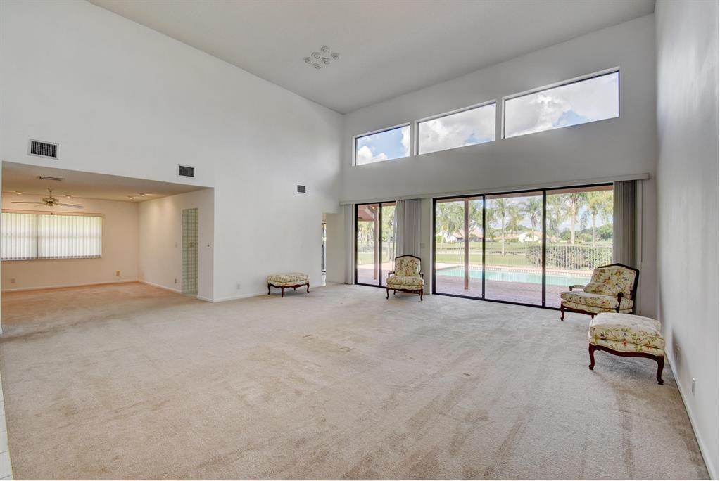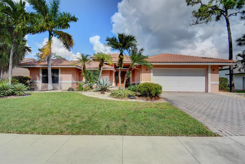 THIS LOVELY HOME HAS A DOUBLE DOOR ENTRY - ONCE YOU ENTER YOU SEE THE EXPANSIVE GOLF COURSE VIEW - EXTRA LARGE PATIO AND POOL WHICH CAN BE SEEN FROM THE GREAT ROOM, WHICH HAS EXTRA HIGH CEILINGS, MASTER BEDROOM AND KITCHEN.IT FEATURES 3 BEDROOMS AND 3 1/2 BATHS WITH A SPLIT BEDROOM PLAN FOR PRIVACY FOR OWNERS AND GUESTS SEPARATE CABANA BATH WHICH CAN ONLY BE ENTERED FROM OUTSIDE. PLENTY OF CLOSETS. 2 CAR GARAGE, SEPARATE ENTRANCE FOR THE GOLF CART. BOCA WOODS FEATURES 2 CHAMPIONSHIP GOLF COURSES, DRIVING RANGE, PUTTING GREEN, ACTIVE GOLF AS WELL AS TENNIS -PROFESSIONAL ENTERTAINMENT - FITNESS CENTER WITH PERSONAL TRAINERS - WOMEN CLUB - BOOK CLUB - VALET PARKING FOR OWNERS AND GUESTS. GOLF EQUITY MEMBERSHIP MUST BE PURCHASED WITH ALL HOMES IN BOCA WOODS.