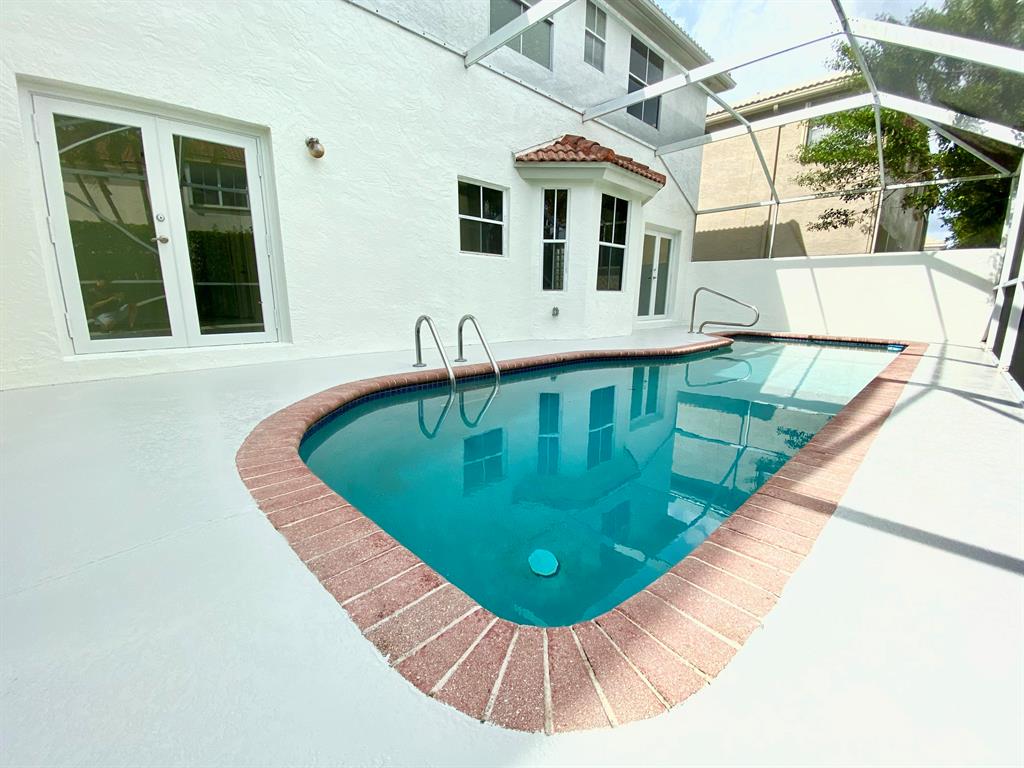 Spectacular 5 Bedroom Pool Home in Sonata at Mission Bay! This fabulous home sits on a corner lot, featuring tile floors downstairs, NEW gray laminate Aquaguard upstairs. Kitchen features NEW stainless steel appliances, Refinished white wood cabinets & granite counter tops, 2 living areas, dining area, Master suite upstairs with lots of closet space, large screened in pool, Custom Hurricane Impact Front Door being installed. Home has been FRESHLY PAINTED (white and gray) on the exterior and pool deck was been resurfaced and repainted.