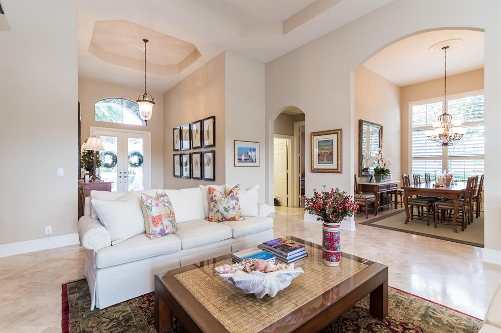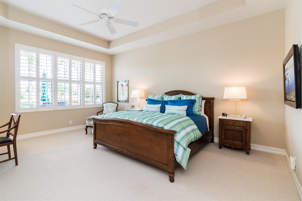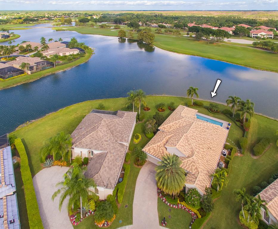 This completely updated, gorgeous home at The Club at Ibis, sits on a pie-shaped lot with the most incredible water and golf views! Located on the 15th fairway of the Heritage Golf Club, the design of this 3BR/3BA + Den open-concept home flows from one room into another. Upgrades include etched front doors and numerous etched windows, tray ceilings, a new roof in 2017, marble floors throughout except wood rugs in the bedrooms, California wood plantation shutters throughout, built-in cherry wood desk and storage in the den, built-in TV and wall unit in the family room, a new Trane 5 ton A/C system installed in 2010, and a custom Irpinia maple wood kitchen with top-of-the-line GE Monogram appliances. This dream house with its 180 degree views of the water and the fairway is simply unequaled!
