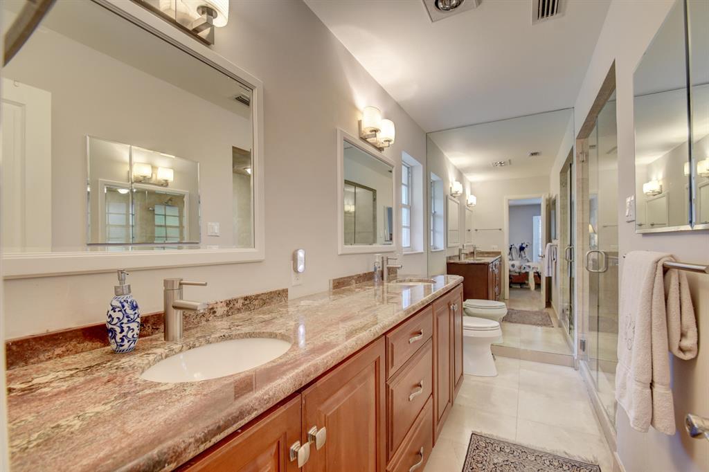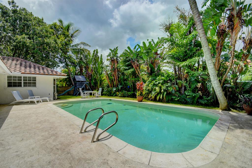 Welcome Home! Come see this beautiful 3 bedroom, 2 bath, 2 car garage pool home w/ a bonus room/den/play room on more than 1/4 acre on a corner lot in highly desirable Palm Beach Farms. Enter from the U-shaped driveway (or the separate side garage driveway - lots of parking!) to beautiful wood floors & an instant view of the saltwater pool. The open kitchen has white cabinets w/ granite counter tops & SS appliances. A split bedroom floor plan, the master has 3 closets & room for a sitting area. The home features plantation shutters, solid core interior doors, LED lighting, indoor laundry w/ granite, a large covered & screened back patio, hurricane panels, 5 Bay windows & gas to stove, grill, water heater & dryer. Gorgeous yard, oaks & palm trees. Great A-rated schools. Blocks to park.